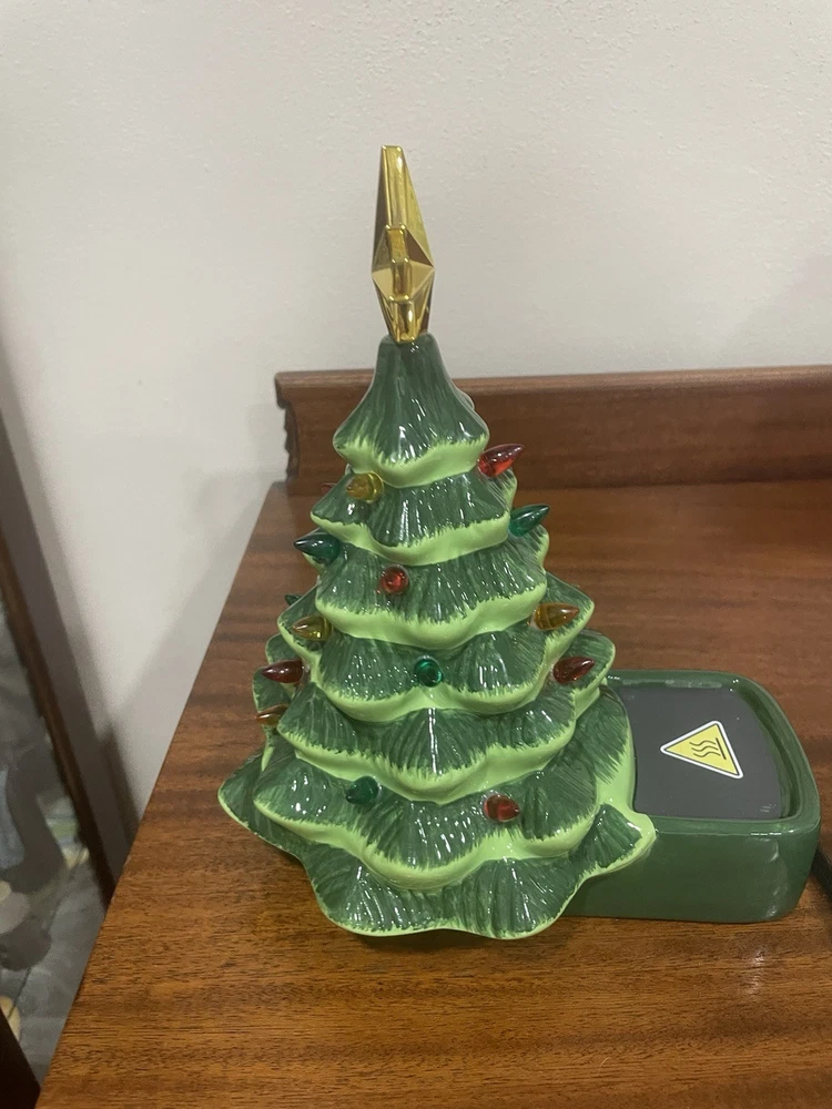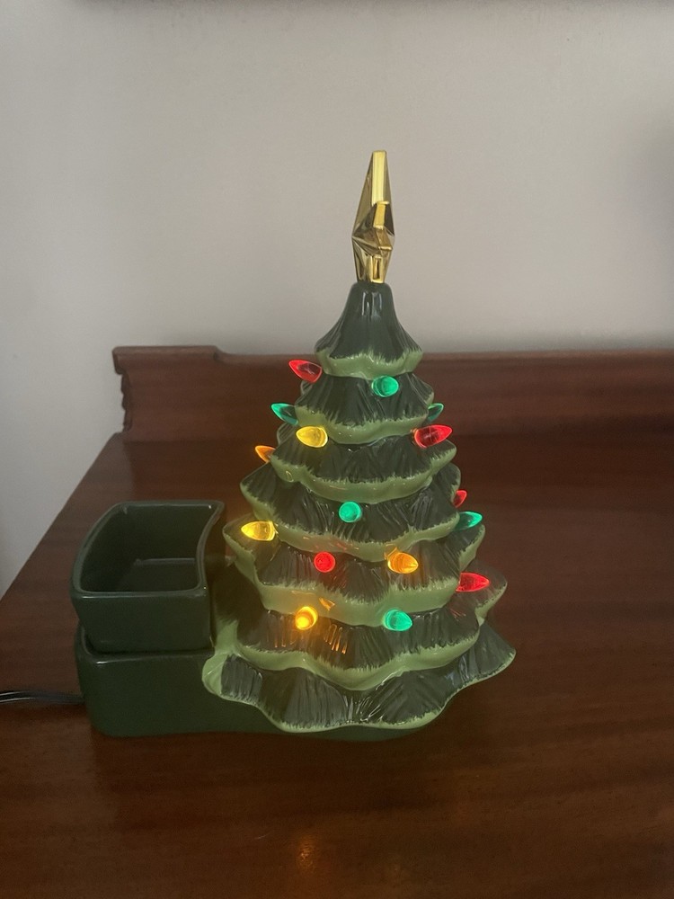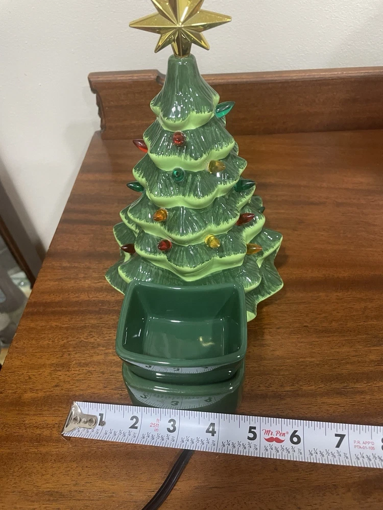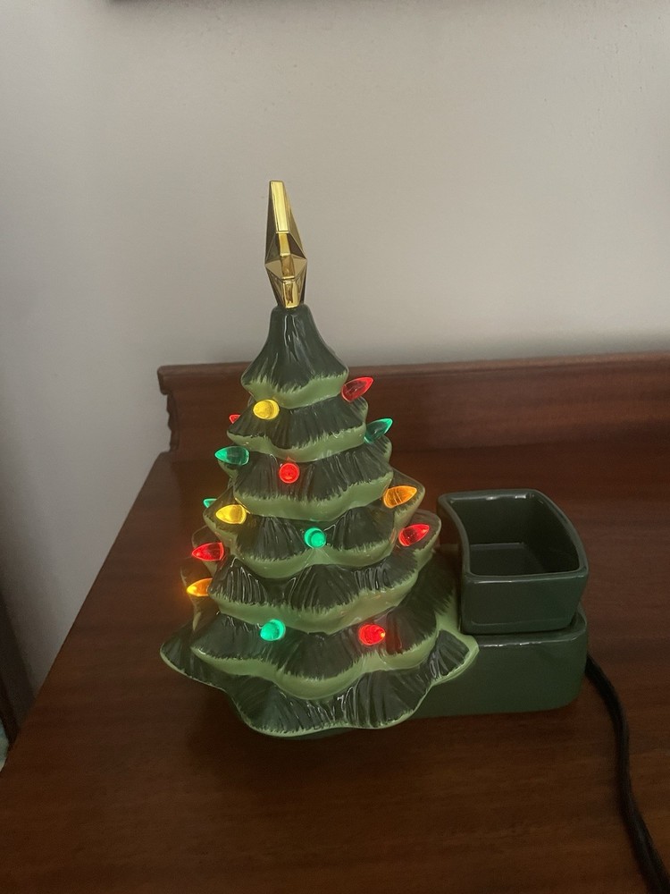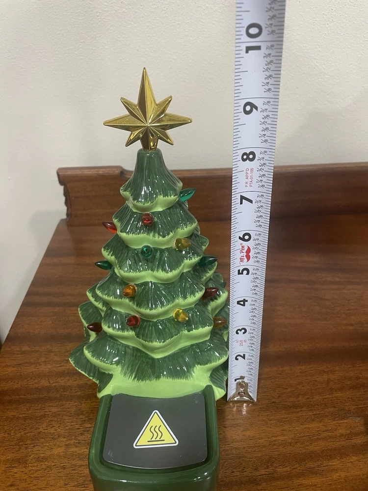 Elevate the festive atmosphere of your home with the Scentsy Merry Little Christmas Tree Wax Warmer. This large, multicolored ceramic container is a perfect addition to your Christmas decor, designed to bring the joy of the season into your space. The wall plug-in feature ensures that you can enjoy your favorite aromas without the hassle of a standalone burner. Crafted to be both a deodorizer and an odor eliminator, this electric oil/wax warmer slowly burns your chosen fragrances, releasing them seamlessly into the room. Measuring at an impressive 9.5 inches in height and 5 inches in width, it's an eye-catching piece that fits comfortably in any room, making it an ideal gift for adults who love to create a cozy, aromatic environment.