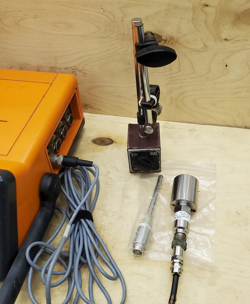 Relisted AGAIN due to foreign buyer again purchased and would not pay. Sorry, no longer dealing with buyers outside the USA. Relisted due to foreign buyer purchased but would not pay. Very nice kit that comes with everything necessary to conduct field balancing operations. This kit was used to balance precision saw blades. Very well taken care of. It includes a 110 VAC power supply, 2 transducers and a magnetic mounting block, a connecting cable and extension cable, ID tape, and the soft bag. Everything powers up and appears to work as intended, but the printer looks to need a new ribbon. Please ask any questions before purchase, as all sales are final. Thanks for looking.