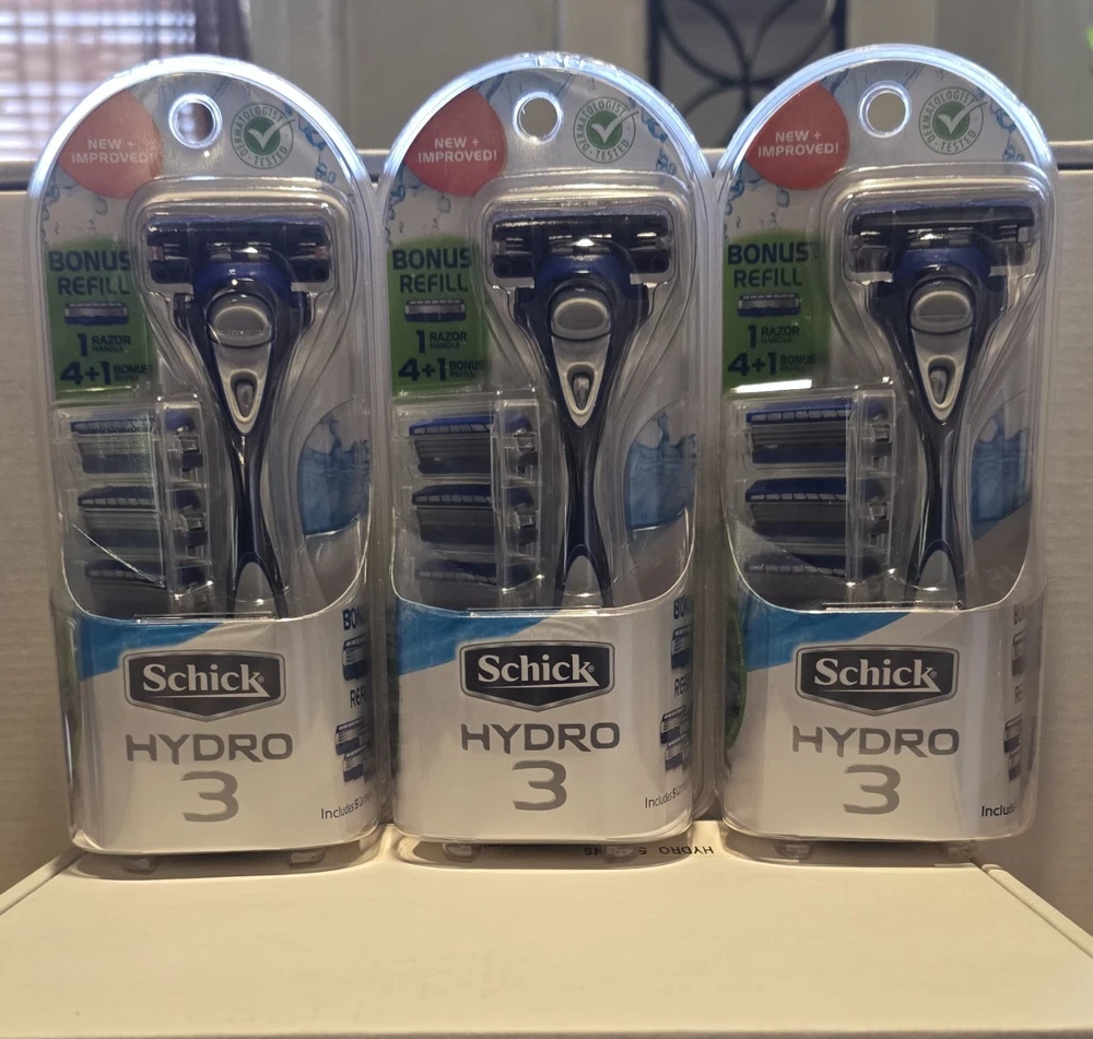 The Schick Hydro 3 Blade Razor Handle with 5 cartridges is a premium shaving product designed for men. With stainless steel blades and a convenient refill cartridge system, this razor offers a close and comfortable shave. The Schick brand ensures quality and compatibility with other Schick products, making it a reliable choice for everyday grooming needs. This set includes 5 cartridges in total, providing ample supply for extended use. Ideal for facial hair, the Schick Hydro 3 Blade Razor is a top choice for those looking for a high-performance shaving experience.
