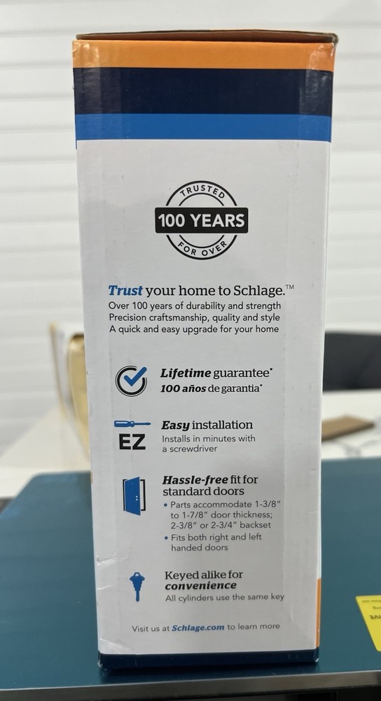 Number in Pack:1Brand:SchlageFixings Supplied:YesSuitable For:Front DoorNumber of Batteries:1Manufacturer Warranty:LifetimeColor:GoldBattery Required:NoNumber of User Codes:1Mounting:UniversalFinish:Brass
