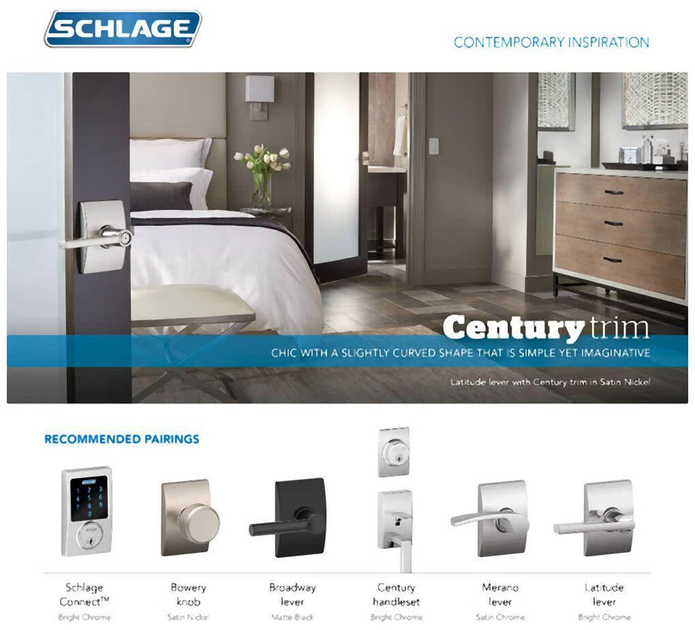Powered by Frooition All Categories Schlage F40-LAT-CEN Latitude Privacy Door Lever Set with Decorative Century Trim Overview Item Description Privacy Function: Privacy door hardware features a push-button locking mechanism on the interior for use on bedroom and bathroom doors where locking is needed. The exterior side features a small pin hole to unlock the door hardware from the outside. Product Features: A Lifetime Mechanical and Finish Warranty gives you the peace of mind that this product will be looking good and functioning smoothly for as long as you own it. (Finish warranty does not include Oil Rubbed Bronze because it is a living finish and it is expected to patina over time) Installation is easy, all you need is a screwdriver and a little time. The set is designed to fit standard prep doors and most installations should take just a matter of minutes. BHMA/ANSI Grade 2 certified which indicates excellent performance across a range of residential applications. This product is built from high-quality materials to give you exceptional security. These levers are field reversible allowing this leverset to be used for both right and left handed applications with ease and eliminating any chance of getting a wrong handed product. Specifications: Backset: 2-3/4", 2-3/8", Adjustable 2-3/8" or 2-3/4" Cross Bore: 2-1/8" Edge Bore: 7/8" Door Thickness: 1-1/2", 1-3/4", 1-3/8", 1-5/8" Handing: Left, Right, Reversible Handle Design: Broadway Trim Design: Upland Product Weight: 1.5 lbs Latch Faceplate: Drive-in, Round Corner Product Variations: F10-BRW-ULD: Passage Lever Set F170-BRW-ULD: Single Dummy Lever F40-BRW-ULD (This Model): Privacy Lever Set F51A-BRW-ULD: Keyed Entry Lever Set Why Choose BuildInc? OUR PROMISE TO YOU About Us At Build, we promise to provide the best selection we can, most competitive pricing, and unmatched customer service. Our store has quality home improvement products from trusted manufacturers like Moen, American Standard, Delta, Kraus, Kichler, Progress Lighting, Schlage, Kwikset, Baldwin, Broan, NuTone, Air King, and Rev-A-Shelf. With over 200,000 home improvement products for you to choose from, we have just what you need to get your project done. Fast & Free Shipping We promise to make it our priority to get you your items as fast as we can. We ship from 440 warehouses around the country, ensuring that your product will get to you as soon as possible. We know you're eager to get your hands on your new purchase, we would be too. As a bonus, most items ship for free. Returns We are happy to accept returns of unused or defective items for a refund within 30 days from the date of delivery. For returns outside 30 days, please contact our Customer Service team to go over our options. For full details, please view the Shipping and Payments tab above. To initiate a return simply go to the eBay Returns Portal and submit a return request. We ask that all items be returned with all original components via a traceable method. Once your return is received and processed, we will quickly get your refund or replacement issued. If for any reason you are unsatisfied with your purchase or for product or warranty questions, please contact Customer Service team for assistance. More Items! View more great items! About Us | Shipping | Returns | Contact Us | FAQ | Collections | Special Offers! Powered by Frooition Frooition Frooition | No-js Template | eBay design, eBay store design, eBay shop design, eBay template design, eBay listing design (ver:froo_no_js) This listing is currently undergoing maintenance, we apologize for any inconvenience caused.