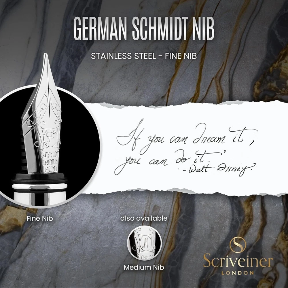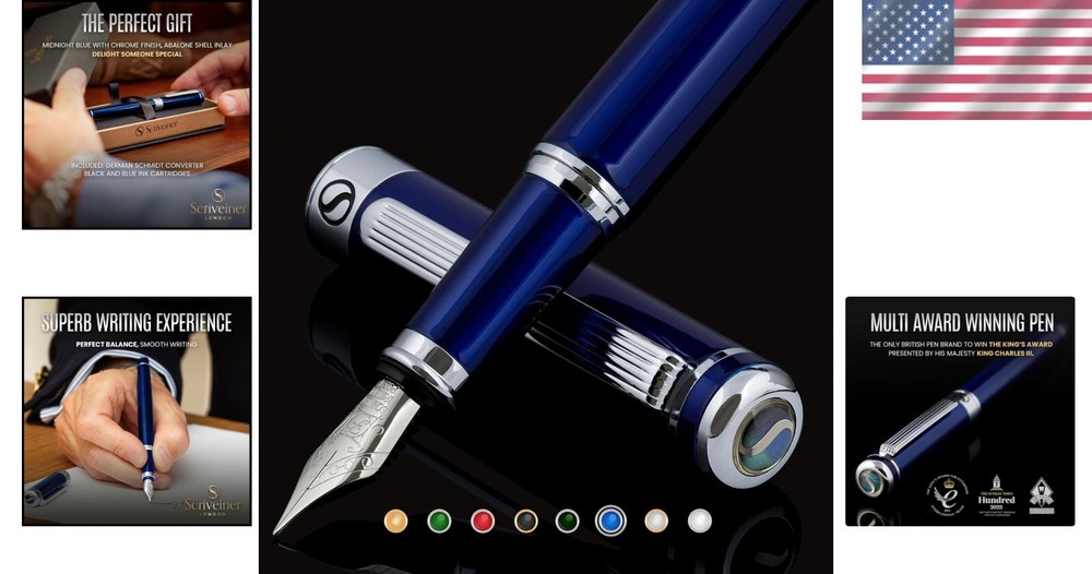 Timeless Schmidt Nib Fountain Pen - Midnight Blue with Chrome, Perfect Gift Set ‹ › ‹ › ‹ › ‹ › ‹ › ‹ › ‹ › ‹ › ‹ › ‹ › ‹ › Timeless Schmidt Nib Fountain Pen - Midnight Blue with Chrome The ultimate expression of elegance and sophistication, this stunning luxury fountain pen by a boutique British brand is truly a treasure. Feel the allure of a true luxury pen in your hand, adorned with rich blue lacquer and chrome appointments, designed to impress. Features: Made from high-quality brass, ensuring durability and a premium feel. Equipped with a Schmidt fine nib for smooth, effortless writing. Includes Schmidt converter for convenient ink refilling and two spare cartridges (one black, one blue). Perfectly weighted and balanced for an exceptional writing experience. Presented in a beautiful gift box, ideal for any occasion. Benefits: Transcribe your thoughts effortlessly with the smooth writing experience. Impress colleagues, friends, and loved ones with this elegant accessory. Perfect for both casual and executive use, adding a touch of luxury to any setting. Designed in London, showcasing classic British style and timeless attributes. Total confidence with a money-back guarantee and outstanding customer service. Why Choose the Timeless Schmidt Nib Fountain Pen? Transform your writing experience with this luxurious fountain pen that combines functionality with elegance. Whether utilized at the office, home, or for personal expression, this pen is designed for those who cherish the art of writing. With a thoughtful gift presentation, it serves as an exquisite gift for any occasion—be it Christmas, Mother’s Day, Father’s Day, or simply a personal indulgence. Elevate your writing experience; order the Timeless Schmidt Nib Fountain Pen today and make a statement of sophistication with every stroke. Shipping Free & Fast Shipping - We offer free shipping to most of the USA with a normal delivery time of 3-7 days. However, due to the current situation, additional delivery time (up to 3 weeks) may be required for some items. Alternative Carriers - We may use alternative carriers (e.g. USPS, FedEx, UPS, etc.) to ensure your package arrives safely and on time. Due to the use of multiple carriers, we are unable to provide a tracking number automatically. Handling Time - Orders are processed and shipped within 1-2 business days of receiving cleared payment. Shipping Restrictions - Shipping to Alaska, Hawaii, Puerto Rico, Guam, and other US territories may incur shipping charges or delivery restrictions. Please contact us before ordering, or your order can be refunded/cancelled. State Restrictions - There may be restrictions based on your state of purchase. For example, certain items may not be shipped to California due to state regulations. Contact for Tracking Updates - If you require tracking updates or have any concerns about the delivery of your order, please feel free to contact us, and we will be happy to assist you. Return 30-Day Hassle-Free Returns - We want you to be completely satisfied with your purchase. If you are not, you can return the item within 30 days of receiving it for a full refund or exchange. Easy Return Process - To start a return, simply contact us and we will provide you with a prepaid return shipping label and detailed instructions. Restocking Fee - There are no restocking fees for returns. However, the buyer is responsible for return shipping costs if the return is not due to a seller's error. Refund Processing Time - Refunds will be processed within 5 business days of receiving the returned item in its original condition. Payment We accept all major credit cards, PayPal, and Apple Pay for your convenience. Your payment information is secure and encrypted to ensure a safe and seamless transaction. Please complete your payment within 3 days of purchase to avoid any delays in shipping. Feedback Your feedback is extremely important to us. We strive to provide the best products and customer service possible. If you are satisfied with your purchase, please take a moment to leave us a positive review. If you have any concerns or issues with your order, please contact us before leaving negative feedback. We are committed to resolving any problems and ensuring your satisfaction. Contact Us If you have any questions or concerns, please feel free to reach out to our customer support team. You can contact us through the eBay messaging system. We are available Monday to Friday, 9:00 am to 5:00 pm EST, and we will do our best to respond to your inquiry within 24 hours. Thank you for supporting our small family business! Features: Chrome Trim,Presentation Box,Understated Luxury,Smooth Writing Experience,Stunning luxury fountain pen,Premium quality,Executive pen,Impressive gift set,Boutique British design,Designed in London, England,Comfortable grip,Includes converter and two cartridges,Beautiful gift box Brand: Unbranded Material: Brass Ink Color: Black Nib Size: Fine (F) Nib Material: Stainless Steel Country/Region of Manufacture: Not Set Vintage: Not Set Personalized: Not Set