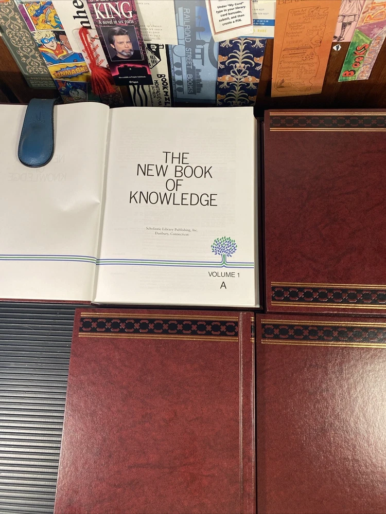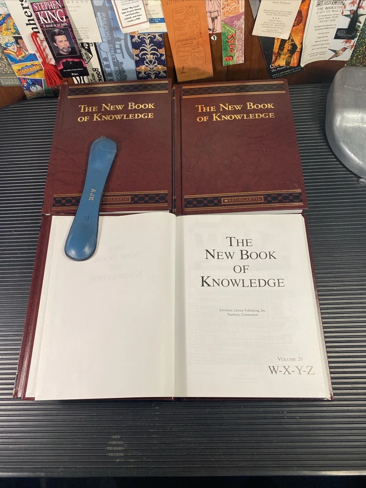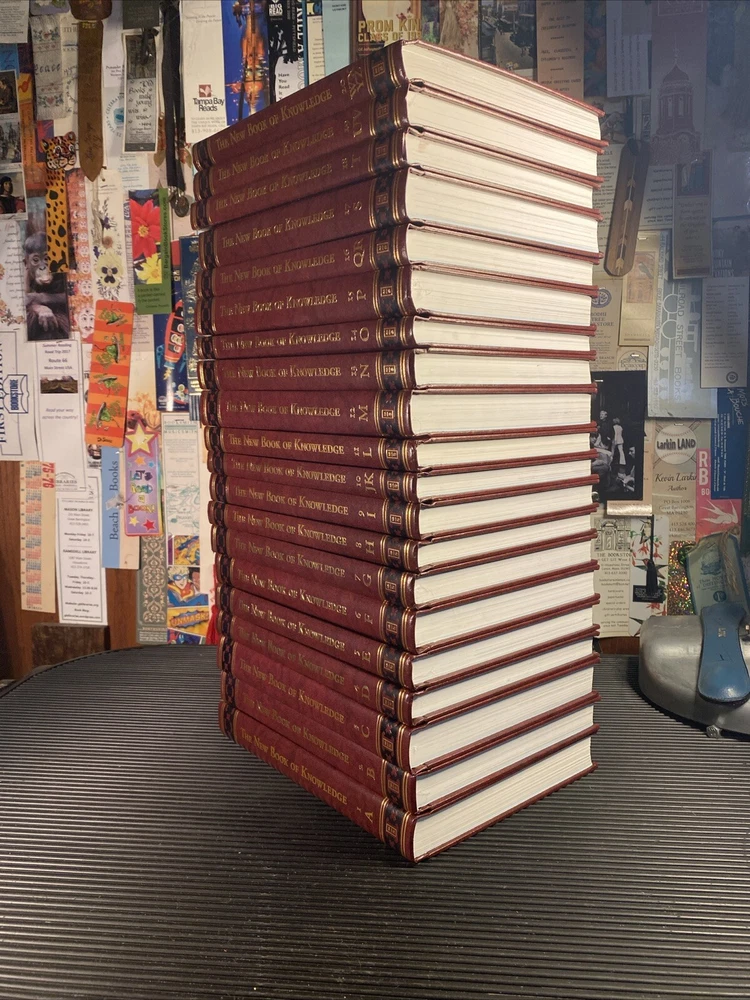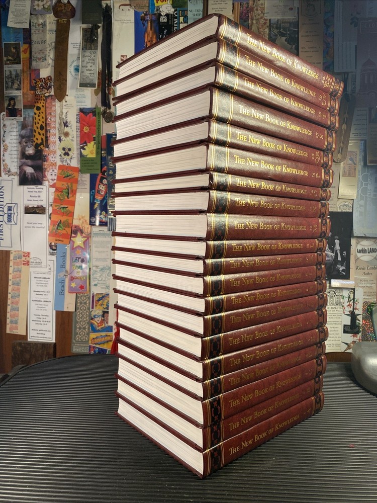 Scholastic The New Book of Knowledge 20-Volume Hardcover Encyclopedia Set in Red Decor