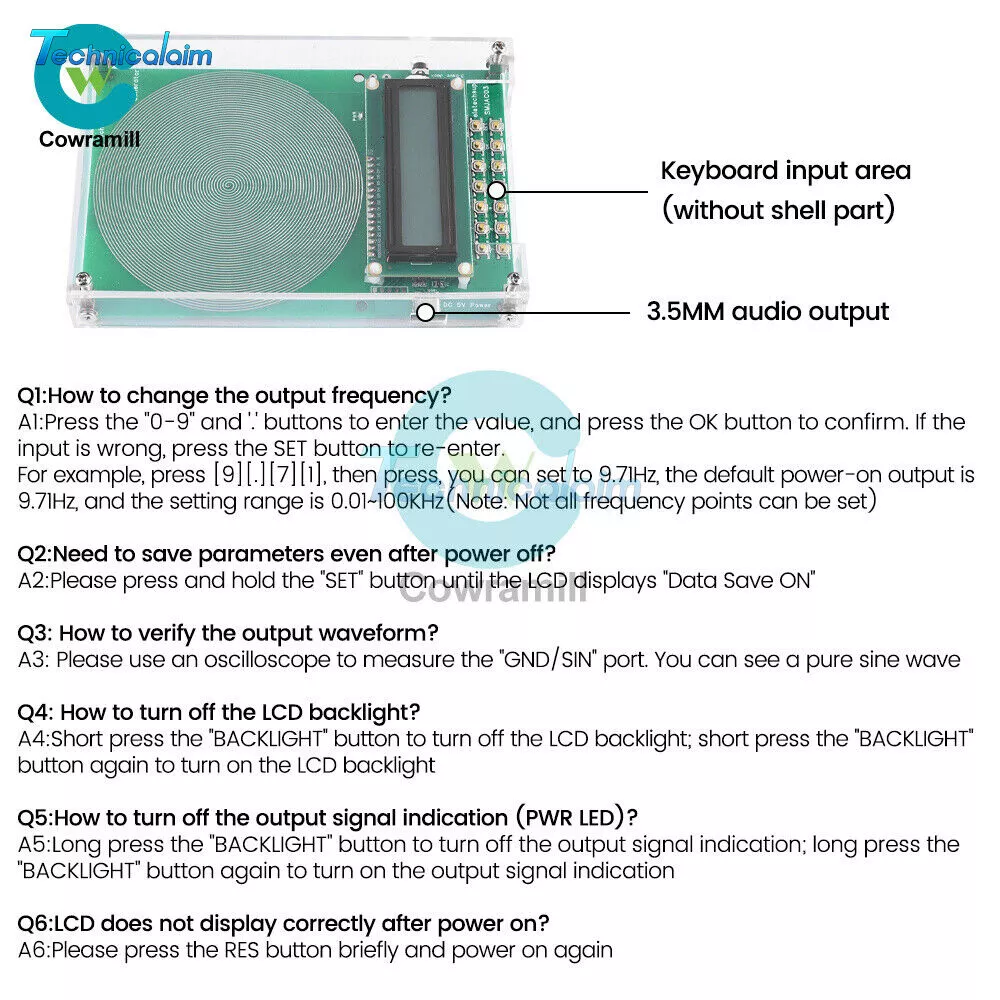 Details Features: 1. This product is made of high quality materials, using low temperature drift crystal oscillator and high precision DAC special chip, the frequency stability of the product is good; 2. This product not only can output 7.83Hz Schumann wave, but also added programmable frequency modulation technology, can be adjusted in the range of 0.01Hz ~ 100000Hz frequency; 3. 2 kinds of specifications, with no shell and with shell 2 kinds can be selected according to demand; 4. Digital circuit crystal frequency reference, more stable, stronger anti-interference; 5. Power supply interface using Type-c interface, easy to use, support Type-c to Type-c power supply. Product Description: Schumann wave itself is not a direct role in the sound or video products to improve sound quality, but the role of the spatial environment, so that people's physical and mental relaxation, improve the body's perception of sound and images, improve the health of the human body to improve the efficiency of the work of the human body, and alleviate the psychological pressure also has a better effect. The product can not only output 7.83Hz Schumann wave, but also can be adjusted in the range of 0.01Hz-100KHz frequency, digital circuit crystal oscillator frequency reference, more stable, stronger anti-interference, the use of low-temperature drift crystal oscillator and high-precision DAC special chip, you can accurately output the frequency and pure sine wave. Product Parameters: Without case version: Operating voltage: DC 5V (DC 4-15V) Working current: 8-14MA Power supply interface: Type-c (supports Type-c to Type-c power supply) Default frequency: 7.83Hz Adjustment range: 0.01Hz~100000Hz pure sine wave Signal voltage amplitude: 3V PCB board size: 150*100*12MM With acrylic shell version: Operating voltage: DC 5V (DC 4-15V) Working current: 9-14mA Power supply interface: Type-c (support Type-c to Type-c power supply) Default frequency: 7.83Hz Adjustment range: 0.01Hz~100000Hz pure sine wave Signal voltage amplitude: 3V With 3.5MM audio output connector With acrylic case Size: 155*105*26MM (with shell) Product list: (Optional) Set 1: 1X signal generator Set 2: 1X signal generator 1X Acrylic case (shipped assembled) Shipping Payment Return Policy Shipping 1.We only ship to the confirmed address provided by eBay. please make sure your ebay address is 100% matches the address you would like us to ship to. If not, please let us know before we sent you the package, or we will not be responsible for any loss. hope you could understand. 2.Orders will be processed instantly and dispatched within 1-2 business days except hoilday, so we do NOT accept any email/message note after you place orders. 3.All package need to wait 30 days, Please take care it.Less than 30 days,we can't take a refund . Payment 1.We accept PayPal payment ONLY, and must be received within 5 days from the date of purchase. 2. It is easy and safe for you to pay by credit cards, debit cards, bank transfers and PayPal account balances. 3.Buyers are responsible for import duties,custom fees and taxes, if any, please check your country. Return Policy 1.We believe our items are so outstanding. We are convinced you will be happy with your Purchase. 2. If you do not satisfy with our items. Please simply return to us within 30 Days in original condition. Just pay for the returned postage. Then we can issue full refund or resend the item to you after the returned item arrived at our warehouse. 3. Please include your eBay ID and item number with any email requests. Store Categories Store Categories Industrial Electronics Computers/Tablets & Networking Home & Garden Phones & Accessories Other