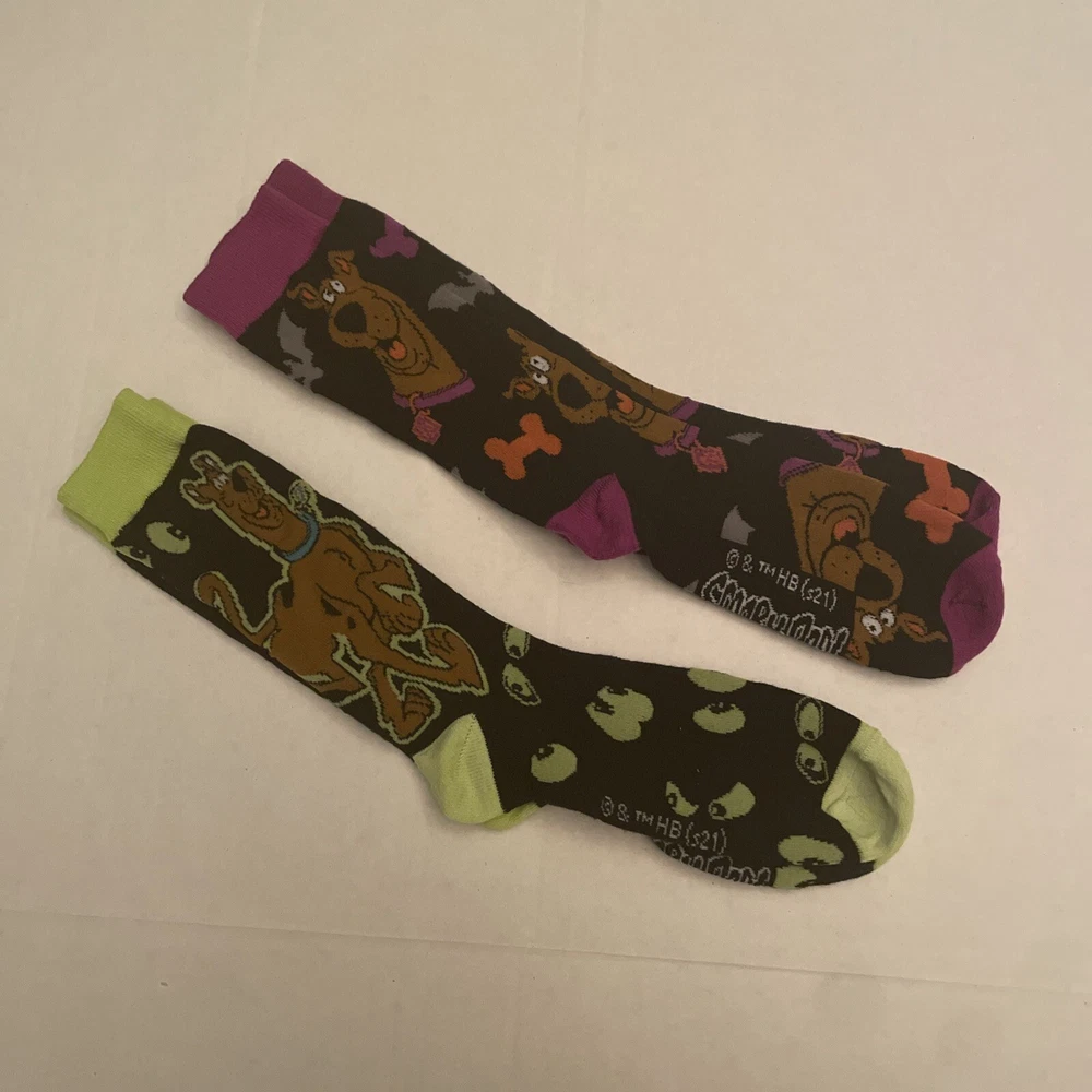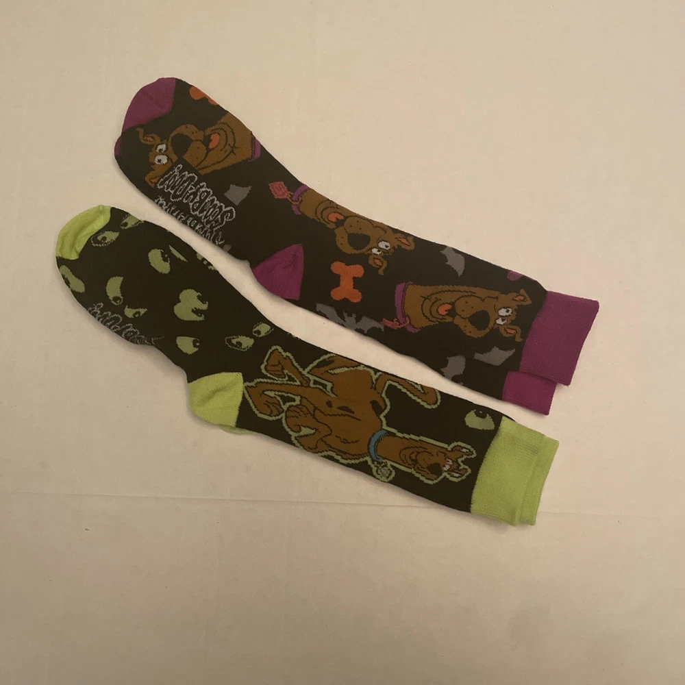 Get ready for Halloween with these Scooby Doo unisex socks! This pack of 2 pairs features a fun and spooky design that's perfect for any Halloween outfit. The socks are made for regular size adults and have a mid-calf length. The multicolor crew socks are never worn and come in a pack of two pairs. They're perfect for both men and women, and are sure to add some fun to your Halloween festivities. Don't miss out on this unique and fun accessory!