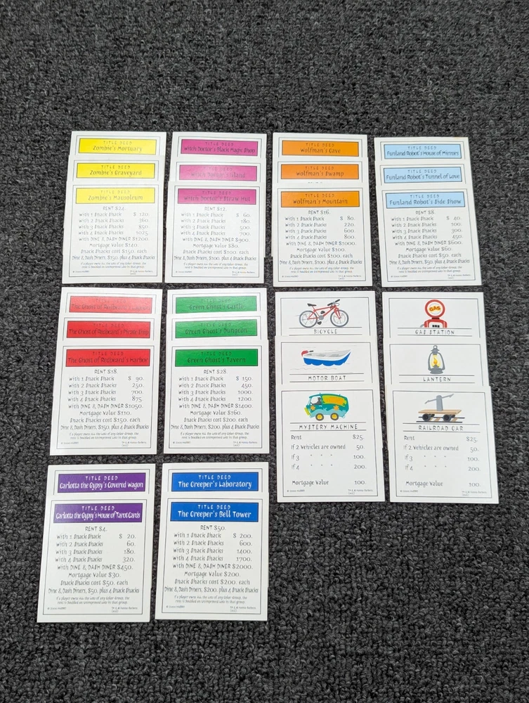 Type:Game BoardAge Level:8-11 YearsUPC:700304001740Theme:Movie & TVRecommended Age Range:8 to AdultMin. Number of Players:2-6 PlayersBrand:Parker BrothersCharacter Family:Scooby-DooGame Title:Monopolygtin13:700304001740Year:2002Award:Games 100Game Type:Board Game