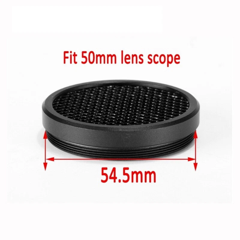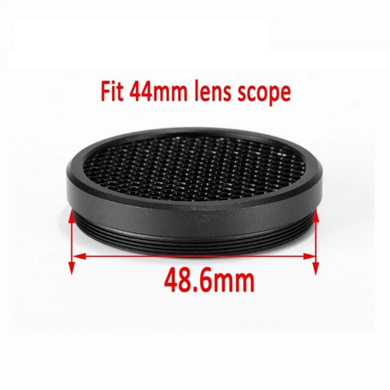 Killflash Honeycomb Scope Protector Mesh 44MM/50MM/56MM Optic Aim Sight Rifle Scope Sunshade Cover Cap Aircraft grade lightweight aluminum construction. Fits Rifle Scope Optical Sight Objective Lens Honeycomb mesh scope protector It's for 44mm/50mm/56mm different szie Scopes, 100% suitable for MARCOOL Brand SF rifle scope. Different brand scope size maybe different, If you want to purchase it for other brand scope, you need to check your scope size carefully with the size pictures here. Please note that size, not all 44mm's objective lenses are appropriate. This is the marcool brand Sunshade Protective Killflash. Non quality problems are rejected. ?6?7Warm tips: for example, your model is 4-16x50 AOE (AO refers to the adjustable objective, this is not appropriate, please do not buy) each country's vernier caliper has a certain error. The difference between 1-2 millimeters is the normal range of the ruler and the hand.