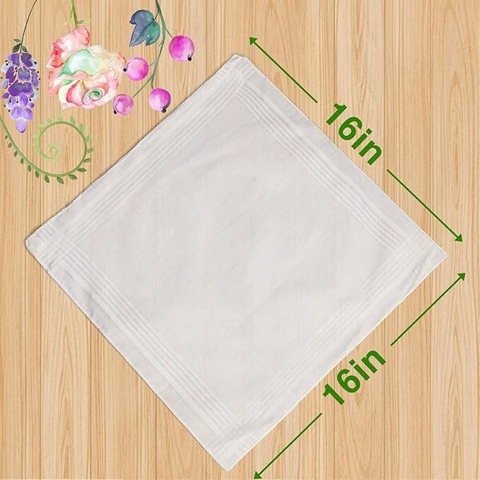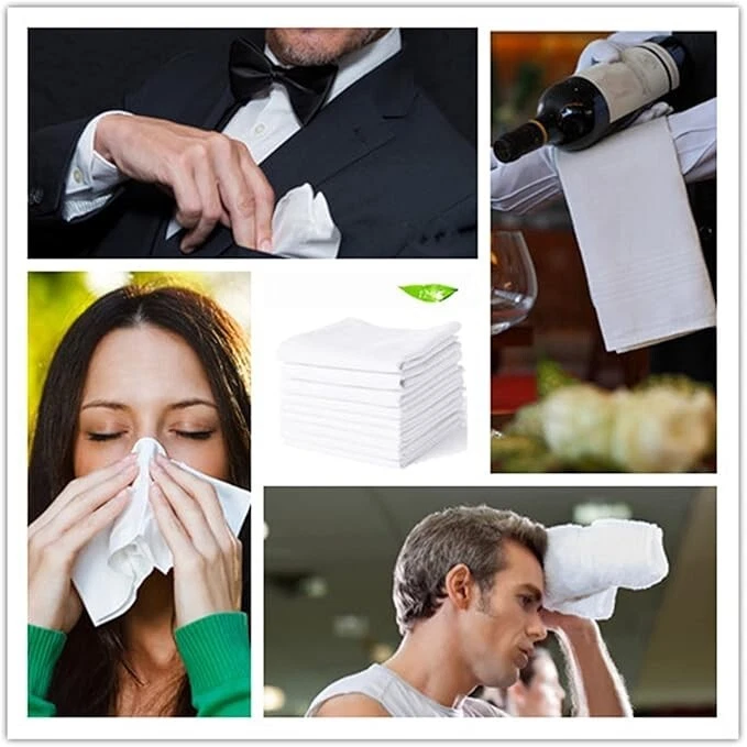 This is a pack of Scotamalone Men's Handkerchiefs in white color, made of 100% soft cotton. The pack includes 6 pieces of handkerchiefs, suitable for men to use as hankies or pocket squares. ★100% Soft Cotton★Scotamalone.6 Pieces handkerchiefs is packaged with white bowknot. ★SIZE★16inches x 16inches . - It is made by 60s cotton.60s cotton is softer than 40s. It is fit for any occasions.Such as: Wedding, Eating food, Wiping sweat, Exercise, Rub the glass and so on. ★CARE INSTRUCTION★Machine washable.It will get softer after first wash.Dry cleaning or hand washing in cold water with a light detergent is highly recommended. ★BEST GIF★ it is a perfect gift for gentlemen, grandfathers, fathers, dads, or anyone who enjoys it.If they don’t work out for you for any reason then send it back to us for your full money back.