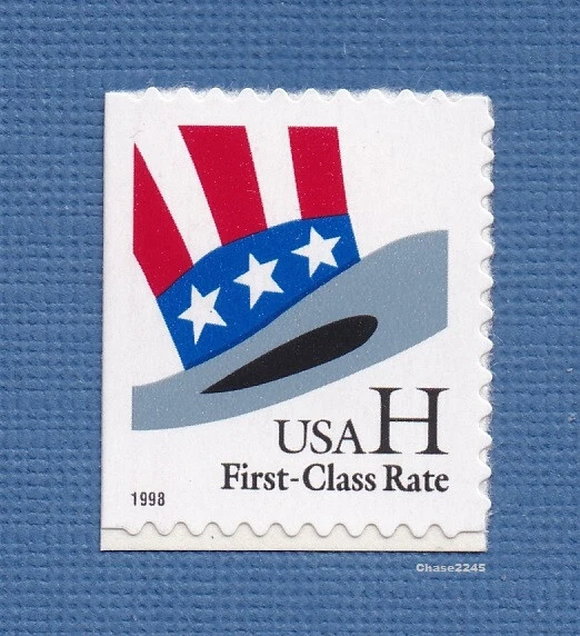 SCOTT #3269 - "H" RATE HAT NON DENOMINATED BOOKLET SINGLE 33c 1998 (USA "H" FIRST CLASS RATE) 'H' Rate Hat Issue Date: November 9, 1998 City: Troy, NY Quantity: 75,600,000 Printed By: Avery Dennison Printing Method: Photogravure Perforations: Die cut 8 Color: Multicolored Due to pending postal rate increases in 1998, the U.S. Postal Service issued a set of non-denominational stamps that feature “Uncle Sam’s hat.” The new postal rate was set at 33¢. This booklet stamp is the only “H-Rate” stamp with die cut 8 perforations, making it easy to tell it from its look-alikes. Scott # 3269 33c Multicolored Issue 1998 Stamp Is Mint, Never Hinged w/Original Gum / Adhesive If you have any questions or need me to elaborate please let me know. I try my best to describe all my listed items as accurately as possible. I will carefully wrap items to protect your purchase during shipping. Sheets, blocks, strips and individual stamps are mailed in a glassine envelope with a cardboard insert or in a heavy duty envelope to discourage bending. Payment is expected within 3 days . Sorry, but I will only ship to the United States. Picture(s) are NOT of the actual stamp you will receive. The picture(s) is for illustrative purposes only. ** Customer satisfaction is very important to me. I work hard to make your purchase both smooth and seamless. I will also communicate with you and let you know the status once you purchase an item. In the event there are any issues or problems please contact me. I will do my best to resolve the issue or make things right. ** THANK YOU FOR LOOKING!! Shipping USPS to U.S. Continental Destinations Only