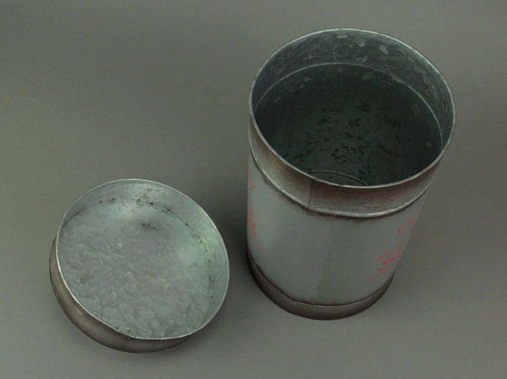 This set of 3 kitchen canisters is perfect for storing your coffee, sugar and flour, without having to deal with the bags they are sold in. Made of metal, they have a galvanized zinc finish, with a distressed, slightly rusty finish on the outside and hand painted labels. The largest canister, for sugar, measures 9.5 inches high, 6.5 inches in diameter. The flour canister is 9 inches high, 5 inches in diameter, and the coffee canister is 7 inches high, 4.25 inches in diameter. The canisters nest together when not in use to save space. They add a touch of country flair to any kitchen, and make a great gift. NOTE: DUE TO A DENT ON THE BOTTOM OF THE SUGAR CAN this item is being sold at a reduced price. Please see last photo for damages/defects. Our eBay Store About Us Add to Favorite Sellers Set of 3 Galvanized Finish Metal Kitchen Canisters NOTE: DUE TO A DENT ON THE BOTTOM OF THE SUGAR CAN this item is being sold at a reduced price. Please see last photo for damages/defects. NOTE - DUE TO A DENT ON THE BOTTOM OF THE SUGAR CAN this item is being sold at a reduced price. Please see last photo for damages/defects. Set of 3. Made of Metal, With A Distressed Galvanized Finish Hand Painted Labels Nest Together For Easy Storage Adds Country Flair To Any Kitchen This set of 3 kitchen canisters is perfect for storing your coffee, sugar and flour, without having to deal with the bags they are sold in. Made of metal, they have a galvanized zinc finish, with a distressed, slightly rusty finish on the outside and hand painted labels. The largest canister, for sugar, measures 9.5 inches high, 6.5 inches in diameter. The flour canister is 9 inches high, 5 inches in diameter, and the coffee canister is 7 inches high, 4.25 inches in diameter. The canisters nest together when not in use to save space. They add a touch of country flair to any kitchen, and make a great gift. NOTE: DUE TO A DENT ON THE BOTTOM OF THE SUGAR CAN this item is being sold at a reduced price. Please see last photo for damages/defects. Product Details Color Multicolored Height 9.5 Length 6.5 Weight 1.85 LB