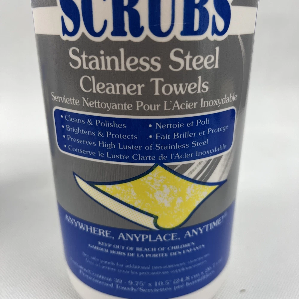 This pack of Scrubs 91930 Stainless Steel Cleaner Towels is perfect for keeping your stainless steel and appliance cleaning needs met. With 30 wipes included per canister and 6 canisters, you'll have plenty of cleaning power to tackle any mess. The towels are made of high-quality polypropylene material and come in a bright yellow color, making them easy to identify. Each towel measures 10 1/2 inches in width and 9 3/4 inches in length, providing ample coverage for your cleaning tasks. They are NSF rated and come in a canister for easy storage and transport. These disposable wipes are ready to use and will make your cleaning routine a breeze.
