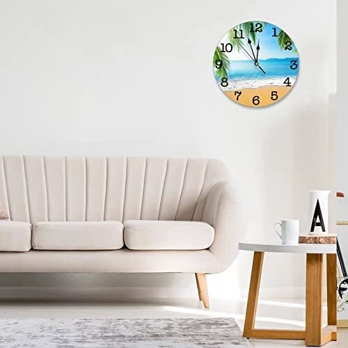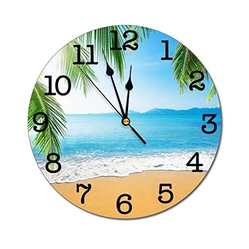 Menu 1. We require immediate payment. 2. We currently accept payment via eBay managed payments only. 3. Once payment is cleared, we will dispatch your shipment within 1-3 business days. Please refer to the "Shipping" tab for more information regarding shipping speed to your destination. Sea Beach with Palm Trees Wall Clock Battery Operated Silent Round Clock Summer Theme Wall Decor for Home, Office, School 9.8 Inch Product description Dimensions: 25 x 0.5 cm/9.8 x 0.2 in. It's just the right size and won't take up a lot of your space, you can hang it on the wall or place it on the table. Material: Made of imported MDF, metal pointer, waterproof painting surface, durable and vivid color, easy to read, no frame nor glass cover for the clock. Slient Clock: Precise sweep seconds movement s accurate time and absolutely quiet environment. Being non-ticking, no TICK TOCK, no noise, it won't bother you when you reading, working, thinking, conversing or sleeping. Perfect Decoration: The creative clock design is unique and personalized to decorate your space and bring a different color to your space. Perfect for living room, bedroom, kitchen, bathroom, classroom, guest room, office, dining room, cafe room, library or any wall of any color. Battery Operated: Powered by 1pc AA battery (not included),a good battery can be used for more than one year, energy saved; wide slot in back of the clock for easy hanging, and equipped with holder, easy to stand on desk. PLEASE MESSAGE US IF YOU HAVE ANY OTHER QUESTIONS, AND MANY THANKS FOR READING ALL OF THIS. Copyright ©#. All Rights Reserved.