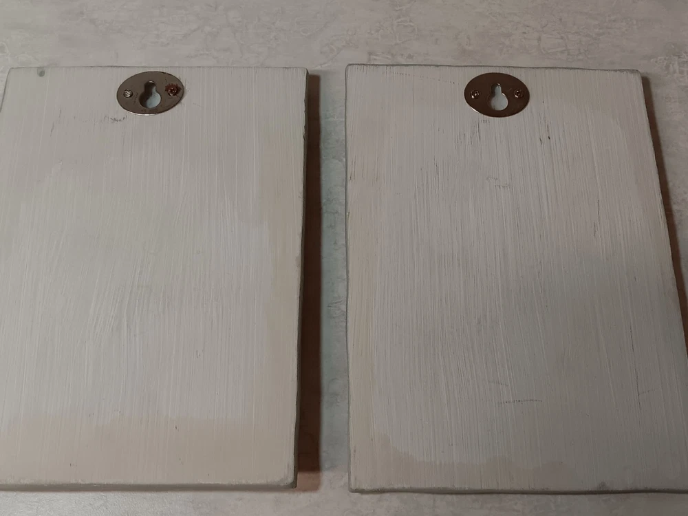 On the back of one of the pieces is rust around the screw of the hanging mechanism. Still functions! Approx Dimensions: Height: 6.25" Width 4.5" Thick: less than a cm