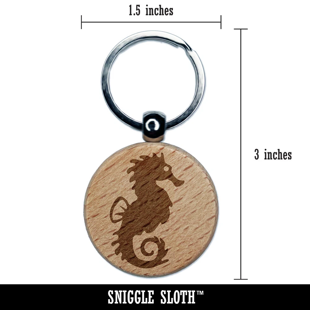 Seahorse Icon Engraved Wood Round Keychain Tag Charm