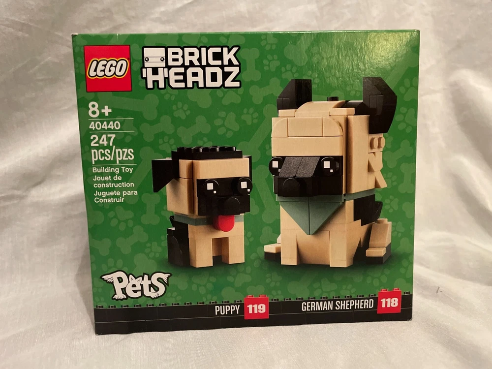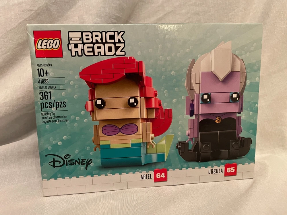 The product is a collection of sealed LEGO Brick Headz sets featuring various themes such as animals, movies, ninjas, and princesses. Each set is designed for builders aged 10 and up, made from a combination of cardboard and plastic materials. Some of the sets are retired, making them collectible items for LEGO enthusiasts. These Brick Headz sets offer a fun and creative building experience for fans of LEGO and different interests. Some of the LEGO sets have minor dents and creases in their boxes.