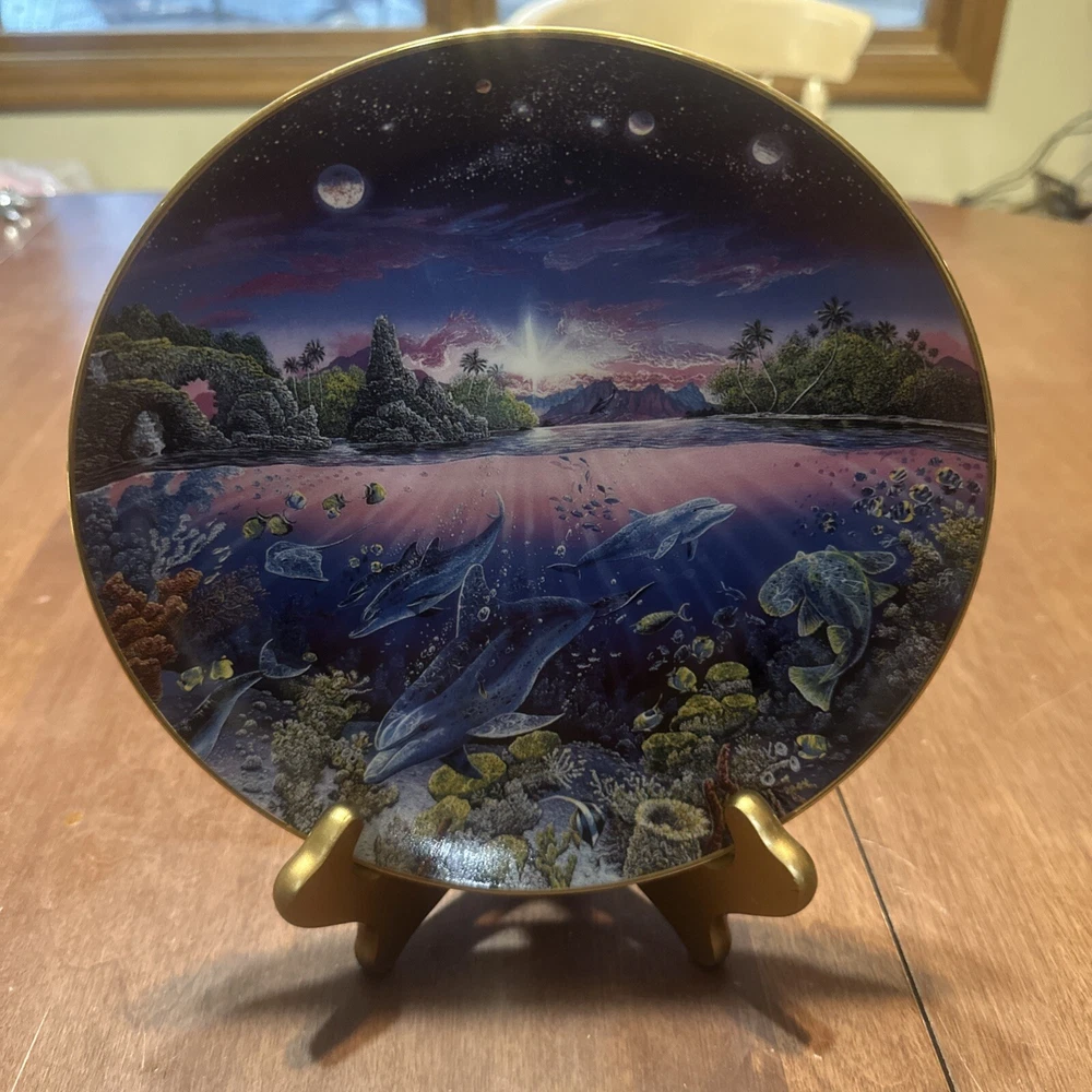 The product is a collector plate titled "Search For Harmony" by Robert Lyn Nelson, part of the Underwater Paradise Collection. Produced by Danbury Mint, this decorative plate is not intended for food use. The design likely features an underwater scene created by the renowned artist, perfect for collectors of decorative plates.