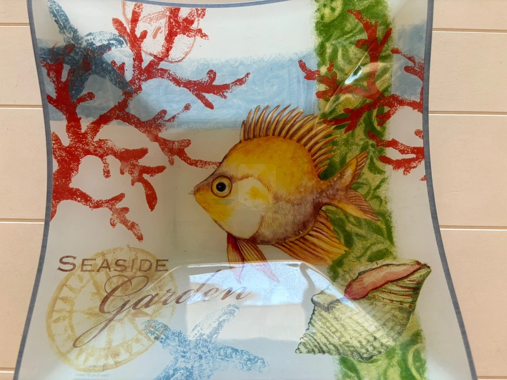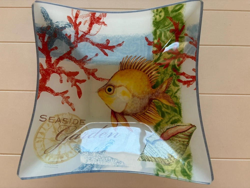 Seaside Garden Fish Coral 10” Square Bowl Ocean Beach Nautical Decor