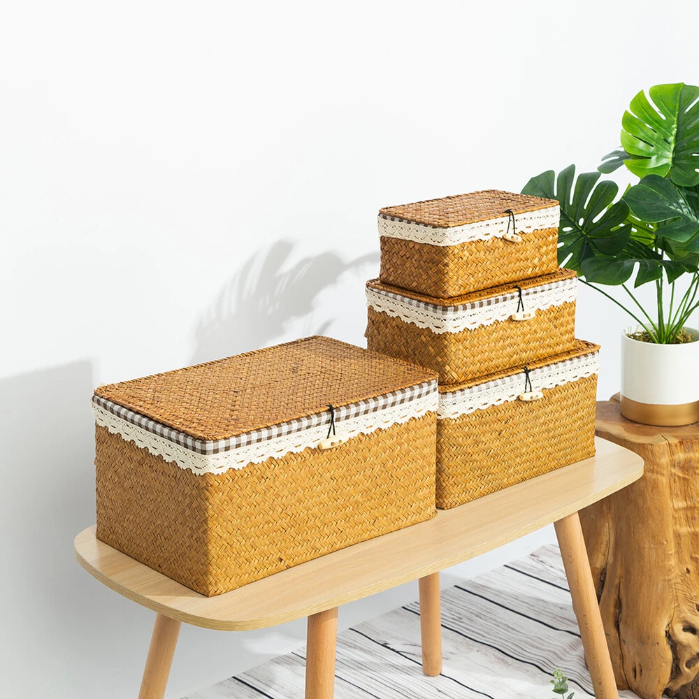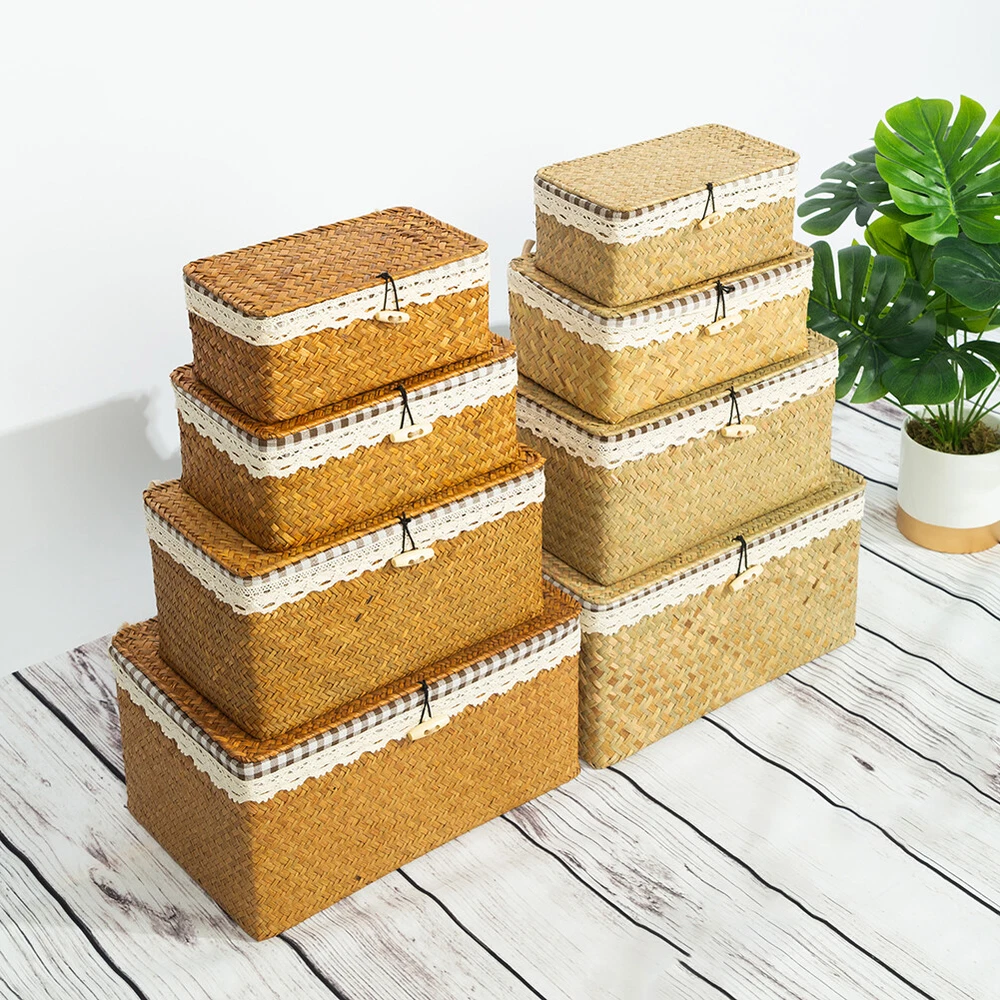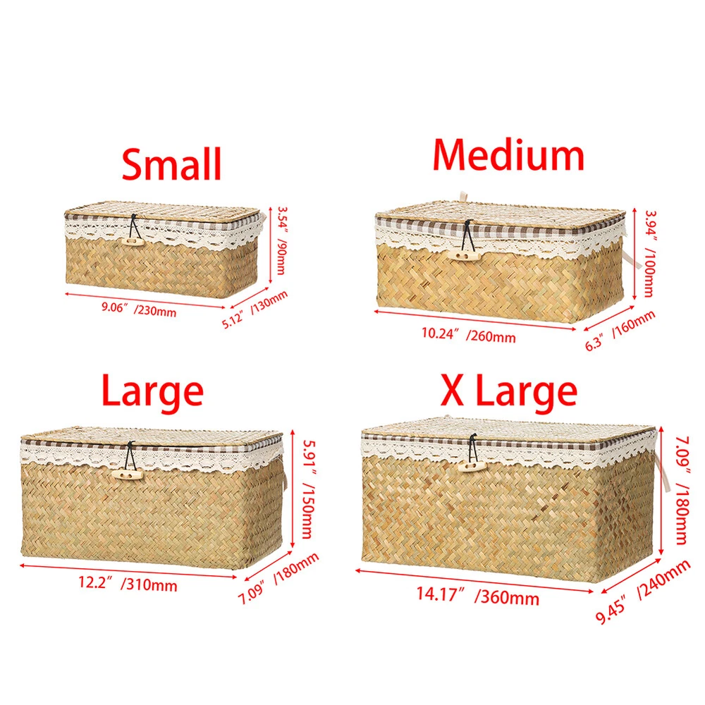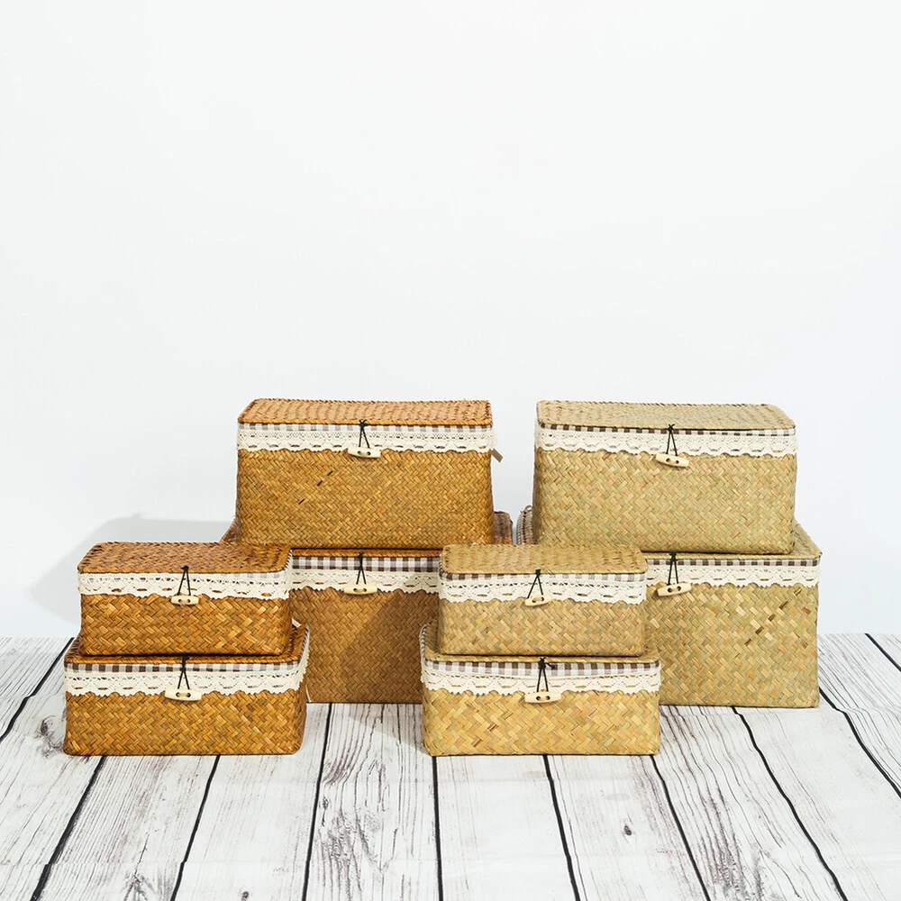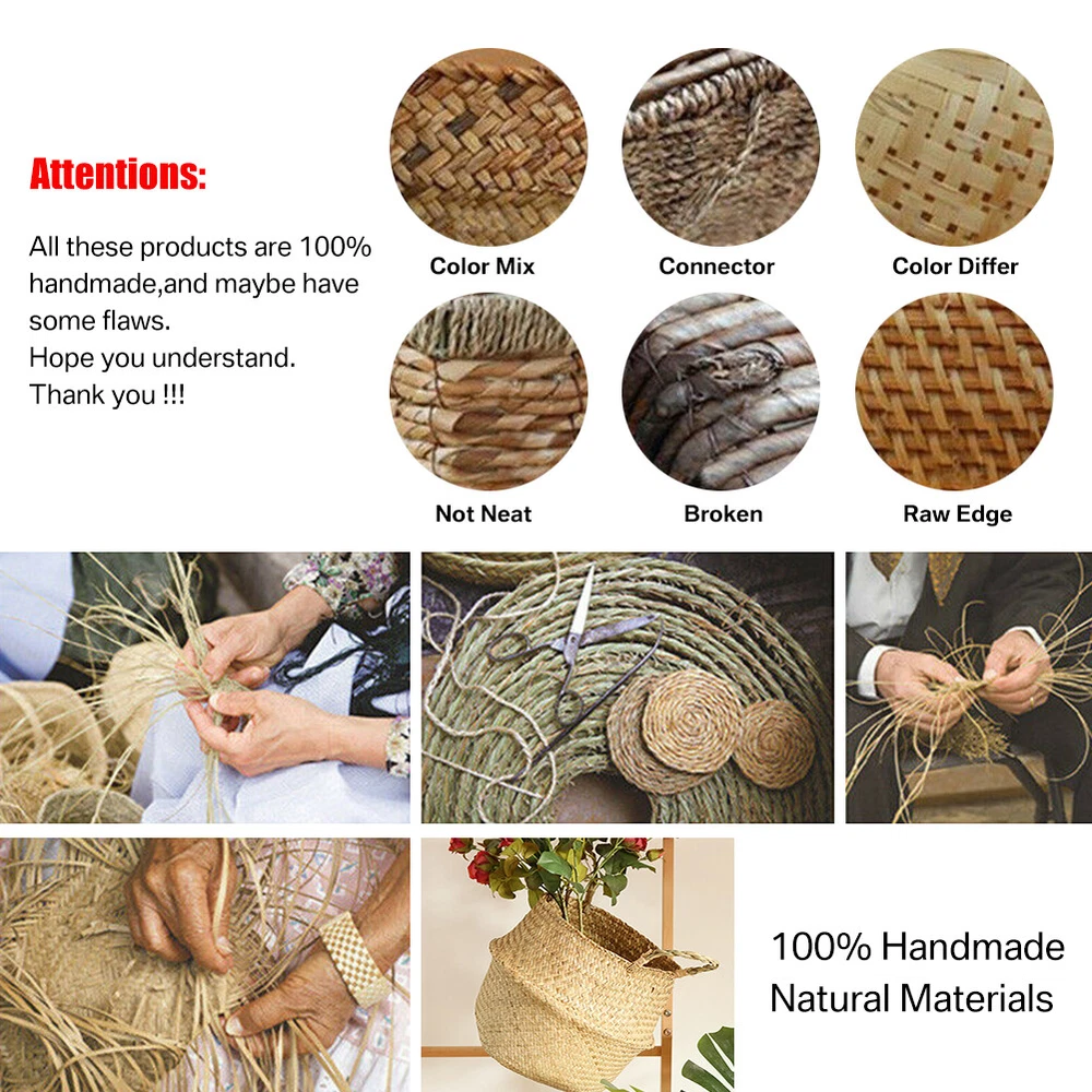 Feature: As a natural green aquatic plant, seagrass has a smooth and tough surface, which is very suitable for weaving materials. The use of folk tradition of hand-weaving the whole process, manual skills Retro, stylish and sturdy, is one of the most popular modern low-carbon environmentally friendly products. Wide range of applications, can be used as decoration and storage baskets. Specification: Item: Seagrass Basket Material: Seagrass + Cloth Color: Nature Brown, Nature Beige Size: S:23*13*9CM M:26*16*10CM Process: Handmade Package included: 1 Pcs Seagrass Storage Box Note: 1.The color of natural seagrass materials cannot be unified, and there will be some color differences. For example, the color of seagrass with different growth degrees will be different. 2. Please allow 1-2cm size errors due to pure manual production and measurement. On Dec 2, 2024 at 20:03:31 PST, seller added the following information: