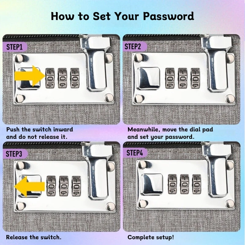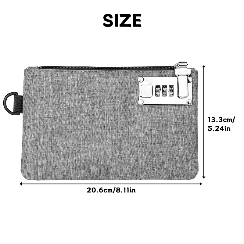 Product name:Lockable Bag Color:Black,Grey Size:As the shown Material: Oxford Style : casual Gender:Man/woman Packing include:1 PC Lockable Wallet Note: 1, Due to the different display settings, the real product may have a little color error. 2, The size manually measured, there is a slight error, please understand.