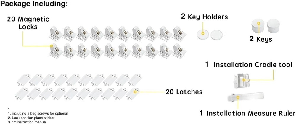 Paquete de 20 cerraduras magnéticas para gabinete - Kit a prueba de niños