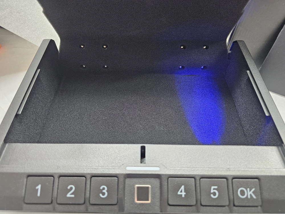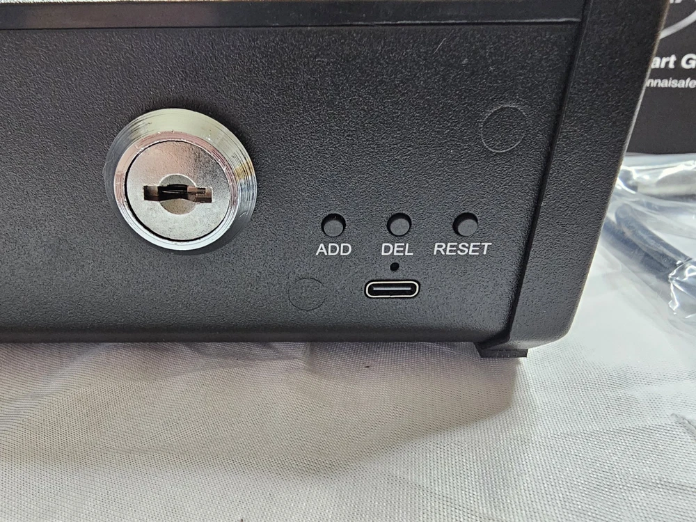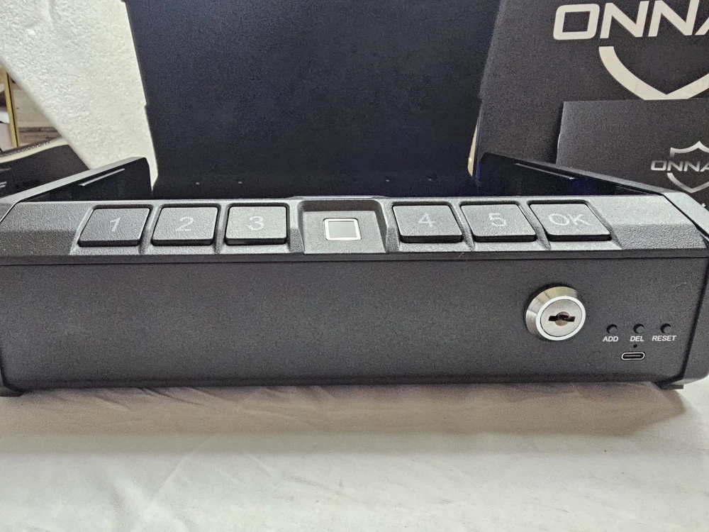 The Secure Biometric Fingerprint Pistol Safe is designed for storing two guns securely with a biometric locking mechanism for quick access. It features an emergency power supply, interior light, security cable, keypad, backup key access, and alloy steel construction in black color. The safe is compact, measuring 9.17"D x 11.49"W x 3.07"H, and includes features such as a biometric lock for added security and convenience. Perfect for keeping pistols safe and accessible in a home or office setting.