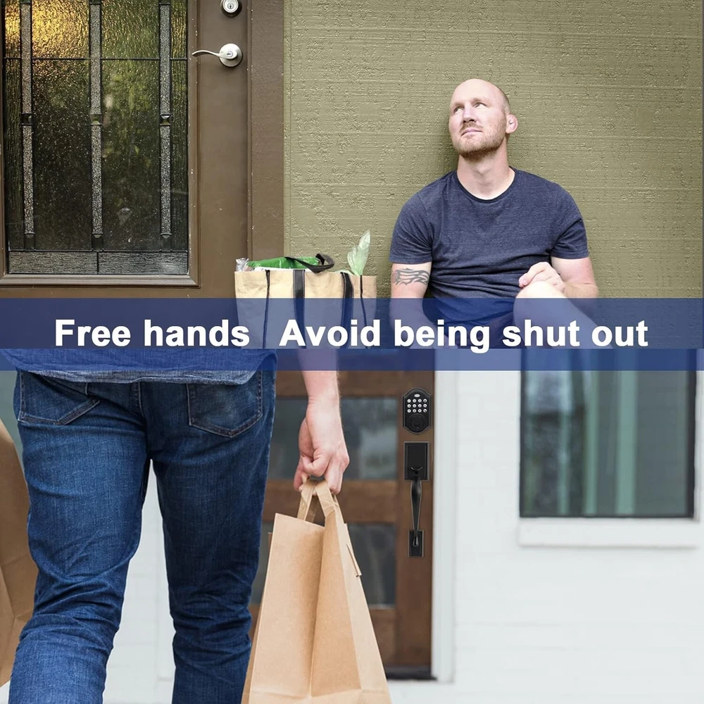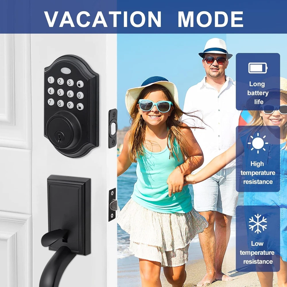 đȘăKeyless Freedom - Free Your HandsăOnly need to enter the set 4-8 security password on the keyboard, you can easily unlock the door. There is no need to rummage for keys when you have clutter in your hand, and get rid of the dilemma of being trapped outside the door because you forgot your keys. đȘăOver 50 CodesăYou can set more than 50 codes. When your relatives and friends come to stay for a few days, you can set a special door code for them. You can delete the code after they leave without changing the code all the time. Safe and efficient. đȘăUnique Holiday ModeăThe door latch can be in holiday mode. In this mode, the consumption will be minimized and the battery life will be longer to ensure that you can still open the lock when you come back from vacation. đȘăTwo Sound ModesăElectronic Keyless Entry Door Lock has two sound modes, you can choose to turn the sound on. If you don't like the beep sound, you can turn off the sound and there will be no sound. And it still works fine in cold weather. đȘăMatch all Kinds of Handles and KnobsăYou could change only the deadbolt on your door, you don't have to change the handle or lever, it will match a lot of handles and knobs. Also has excellent safety, zinc Alloy construction, IP65 weather resistant, durable, safe and reliable to keep you and your family safe.