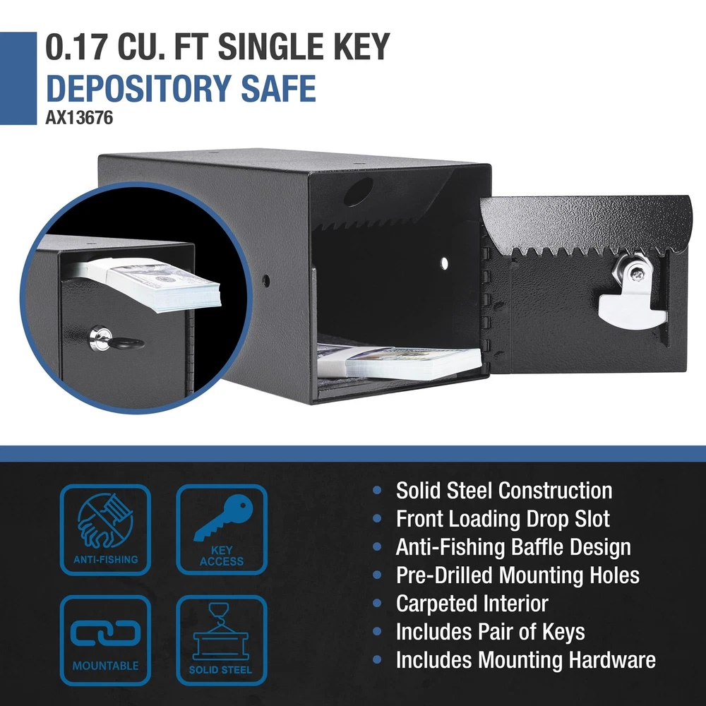 Steel Drop Slot Safe with Key Lock and Anti-Fishing Baffle