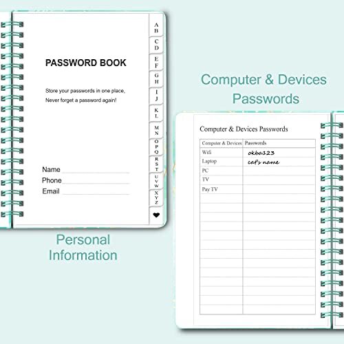 This password book is a lifesaver! The alphabetical tabs make finding logins super quick, and the compact size is perfect for home or office. The spiral binding lays flat, and the sturdy cover keeps everything secure. No more forgotten passwords—just organized, stress-free access to all my accounts. Highly recommend for anyone juggling multiple logins!