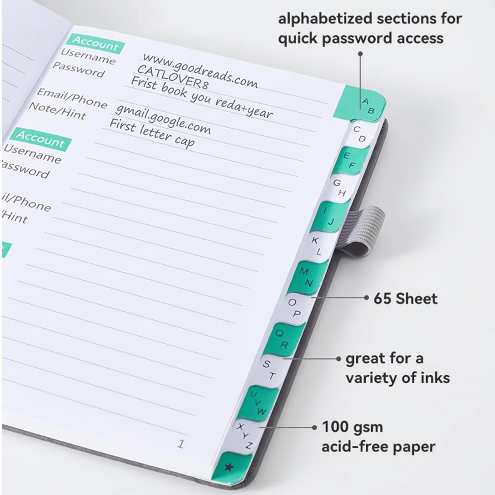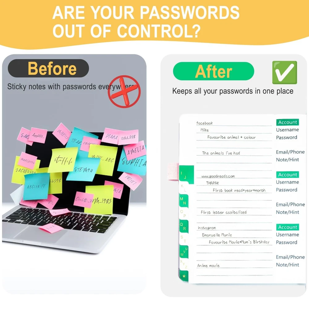 ALPHABETICAL TABS: This password book features alphabetical tabs for easy organization and quick access to your login credentials,Our password book with alphabetical tabs helps you quickly and easily find the password you need. Password keeper book, 5.2"×7.6"size, this password keeper is conveniently portable and can be easily carried in a bag or purse MULTI-PURPOSE: In addition to storing passwords, this notebook can also be used to record internet addresses and other important information. password book with alphabetical tabs: With its sleek and discreet design, this password book is suitable for both personal and professional use. password book 💚 Kindly note 💚 : If you would like to order more quantity than shown is available, you are welcome to place one order fox maximum available quantity and place one more order again because we always have more, than shows in available items. Regards TRANSLATE with x English Arabic Hebrew Polish Bulgarian Hindi Portuguese Catalan Hmong Daw Romanian Chinese Simplified Hungarian Russian Chinese Traditional Indonesian Slovak Czech Italian Slovenian Danish Japanese Spanish Dutch Klingon Swedish English Korean Thai Estonian Latvian Turkish Finnish Lithuanian Ukrainian French Malay Urdu German Maltese Vietnamese Greek Norwegian Welsh Haitian Creole Persian