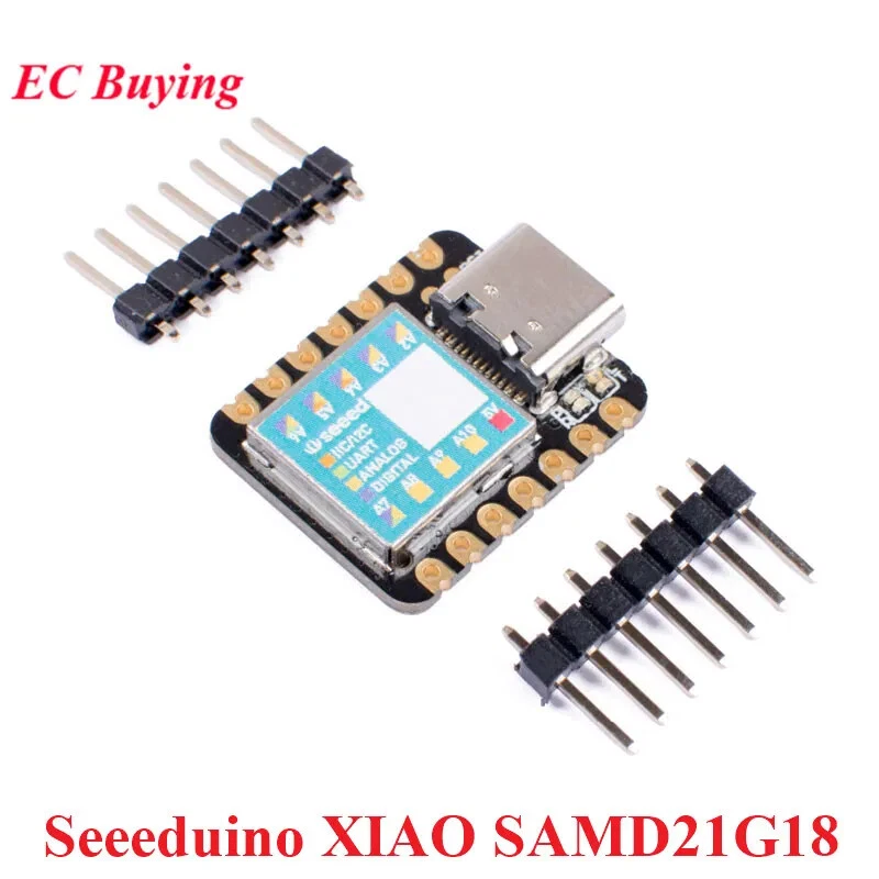 Seeeduino XIAO SAMD21G18 Features: Powerful CPU: ARM® Cortex®-M0+ 32bit 48MHz microcontroller(SAMD21G18) with 256KB Flash,32KB SRAM Flexible compatibility: Compatible with for Arduino IDE Easy project operation: Breadboard-friendly Small size: As small as a thumb(20x17.5mm) for wearable devices and small projects. Multiple development interfaces: 11 digital/analog pins, 10 PWM Pins, 1 DAC output, 1 SWD Bonding pad interface, 1 I2C interface, 1 UART interface, 1 SPI interface. Description: Take a look at Seeeduino XIAO. What a small size and cute looking! It is the smallest member of the Seeeduino family. Seeeduino XIAO still carries the powerful CPU-ARM® Cortex®-M0+(SAMD21G18) which is a low-power for Arduino microcontroller. On the other hand, this little board has good performance in processing but needs less power. As a matter of fact, it is designed in a tiny size and can be used for Arduino wearable devices and small projects. Apart from the strong CPU, Seeeduino XIAO is excellent in many other functions. It has 14 GPIO PINs, which can be used for 11 analog PINs, 11 digital PINs, 1 I2C interface, 1 UART interface, and 1 SPI interface. Some PINs have various functions, A1/D1 to A10/D10 Pins have PWM functions and Pin A0/D0 has a function of DAC which means you can get true analog signals not PWM signals when you define it as an analog pin, that’s why 14 GPIO PINs can realize more I/O PINs and interfaces. Moreover, Seeeduino XIAO supports the USB Type-C interface which can supply power and download code. There are power pads at the back of the XIAO which support battery and make it designed for wearable devices to become realistic. Except for the power LED, we add a user LED on board for your better coding experience. Usually a Dev. Board as small as this size will use the chip’s inner crystal oscillator for time fixing, in order to make the clock more accurate, Seeeduino XIAO layouts an extra 32.768KHz to make the clock more stable. Specification: CPU: ARM Cortex-M0+ CPU(SAMD21G18) running at up to 48MHz Storage: 256KB Flash,32KB SRAM I/O PINs: 14 GPIO PINs,11 analog PINs, 11 digital PINs, 1 DAC output Pin Interface: 1 I2C interface,1 UART interface, 1 SPI interface Power supply and downloading interface: USB Type-C interface LEDs: 1 user LED, 1 power LED, two LEDs for serial port downloading Reset button: two reset button short connect to reset Power Pads: For the battery power supply Software compatibility: Compatible with for Arduino IDE Projection cover for protecting the circuit Dimensions: 20x17.5x3.5 mm Typical Application: Wearable devices Rapid prototyping (directly attached to the expanded PCB as a minimal system) Perfect for all the projects need mini for Arduino DIY keyboard USB development (USB to multi-channel TTL/USB host mode, etc.) A scenario where you need to read multiple mock values The DAC output Hardware Pinout XIAO Grove Shield Feature: On-board Lithium Battery Charging and Management Function Grove connectors (Grove IIC*2, Grove UART*1), all 14 GPIO led out Compact and Breakable Design SPI-Flash Bonding Pad Reserved On-board Power Switch and Charging Status Indicator Light Seeeduino Xiao Expansion Board Specification: Power Supply:5v / 3.7V Lithium Battery RTC chip:PCF8563T/5 RTC battery:CR1220 Expandable memory:MicroSD Card Screen:0.96 OLED display Other External Equipment:Passive buzzer, user button, 5Vservo connector charging current:Max: 460mA Grove Interface:Grove I2C *2, Grove UART *1, A0/D0 Grove *1