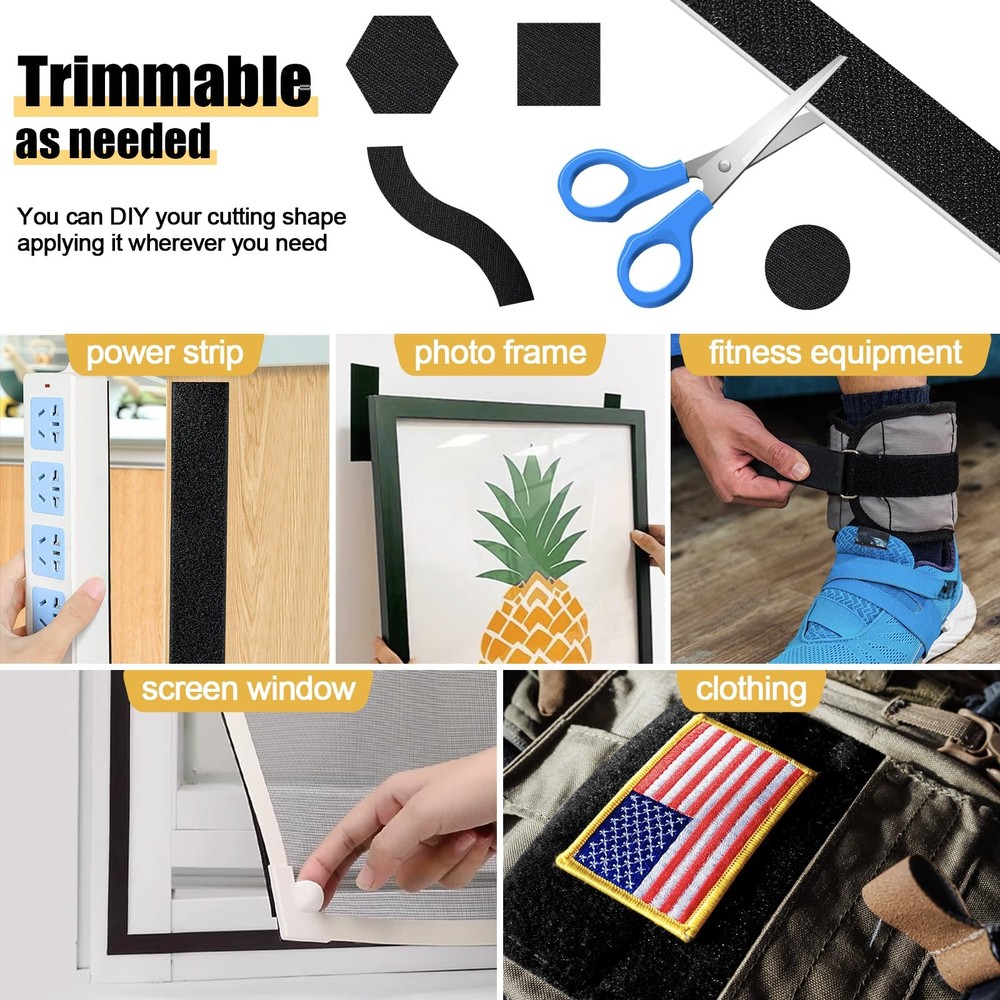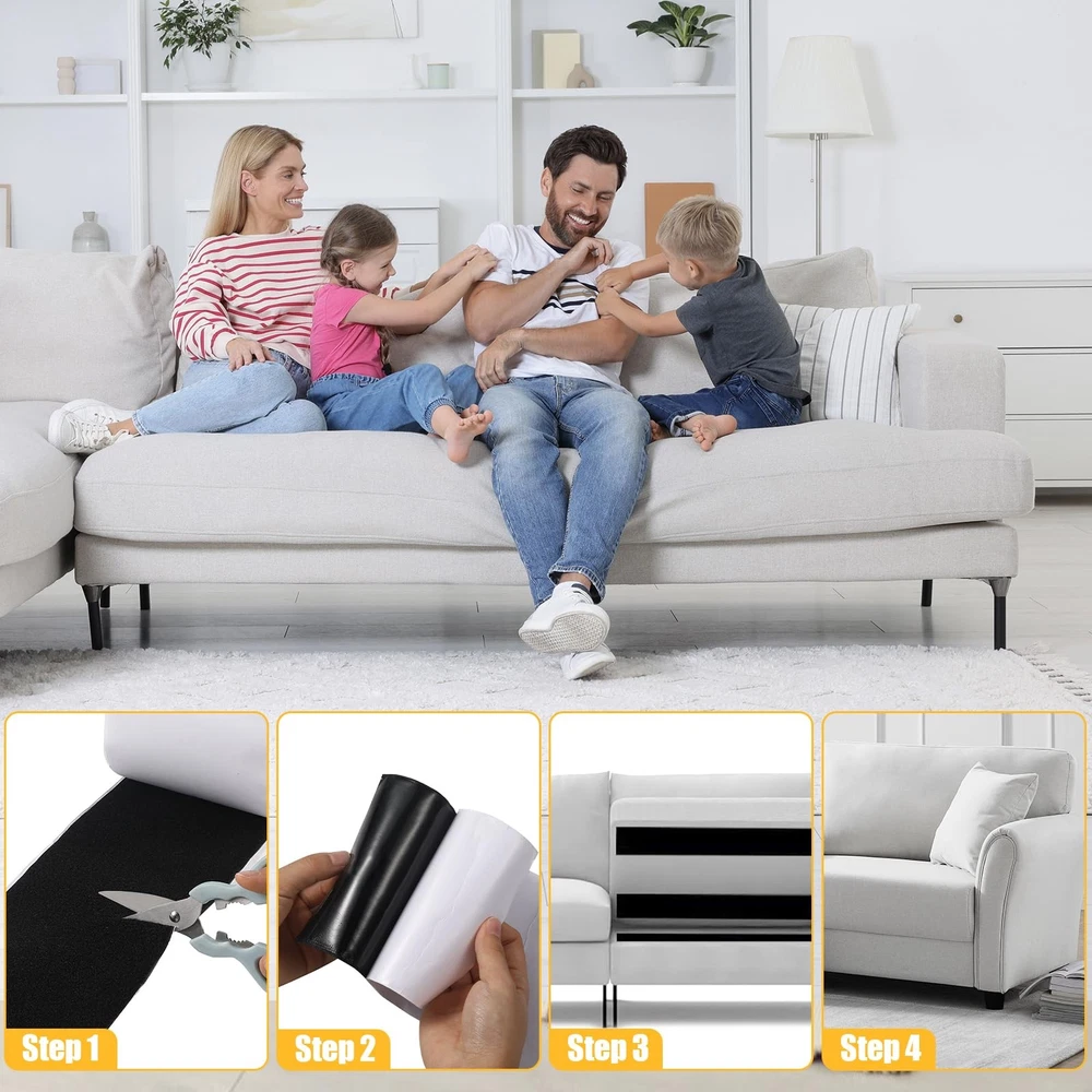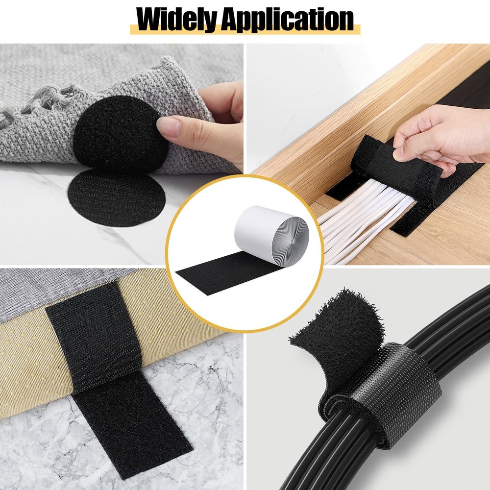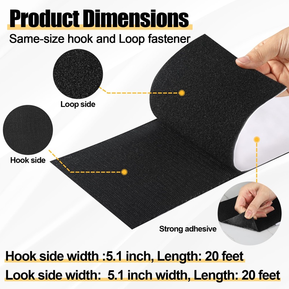 Hook and Loop Tape with Adhesive 5.1'' x 20 Feet, Self Adhesive Hook and Loop Strips Keep Sofa Cushions from Sliding, Keep Carpet in Place, Heavy Duty Non Slip Cushion Pads Sheets-Black ๐๐ฎ๐ฟ๐ด๐ฒ๐ฟ ๐ฆ๐ถ๐๐ฒ: This hook and loop tape roll with heavy duty package includes 2 pieces of black adhesive backed tape; one roll is hook and one roll is loop; Each roll of tape is 5.1 inches wide and 20 feet long. ๐ฆ๐๐ฟ๐ผ๐ป๐ด ๐๐ฑ๐ต๐ฒ๐๐ถ๐๐ฒ ๐๐ฎ๐ฐ๐ธ๐ถ๐ป๐ด: The heavy duty hoop loop sticky strip comes with its own backing and has the industrial strength of a heavy duty adhesive, and ensure a firm and lasting grip on multiple surfaces, including walls, plastics, glass, and more. No need to perforate to ensure the tape sticks strongly to sofa cushions and walls. ๐๐ถ๐ด๐ต-๐ค๐๐ฎ๐น๐ถ๐๐ ๐๐ผ๐ป๐๐๐ฟ๐๐ฐ๐๐ถ๐ผ๐ป: This Hook and Loop Tape is constructed from premium nylon material, ensuring superior strength, non-slip fastening, exceptional durability, stable and durable hook tape can be used countless times and still have strong bonding strength. ๐๐ฎ๐๐ ๐ง๐ผ ๐จ๐๐ฒ: Designed for easy peel-and-stick application, and it can be easily trimmed to size. The strips with adhesive is a simple solution for securing items without the need for making holes in the surface, Peel off the release paper and stick it on the place you want to fix. ๐ฉ๐ฒ๐ฟ๐๐ฎ๐๐ถ๐น๐ฒ ๐๐ฝ๐ฝ๐น๐ถ๐ฐ๐ฎ๐๐ถ๐ผ๐ป๐: The couch cushion grip pad sheet is removable; It can be used as sofa cushion tape, carpet tape to prevent sliding, or you can cut it yourself to mount, hang or secure wall or outdoor items, The adhesive double sided works great in any area such as home, office, tents, school, car,etc.