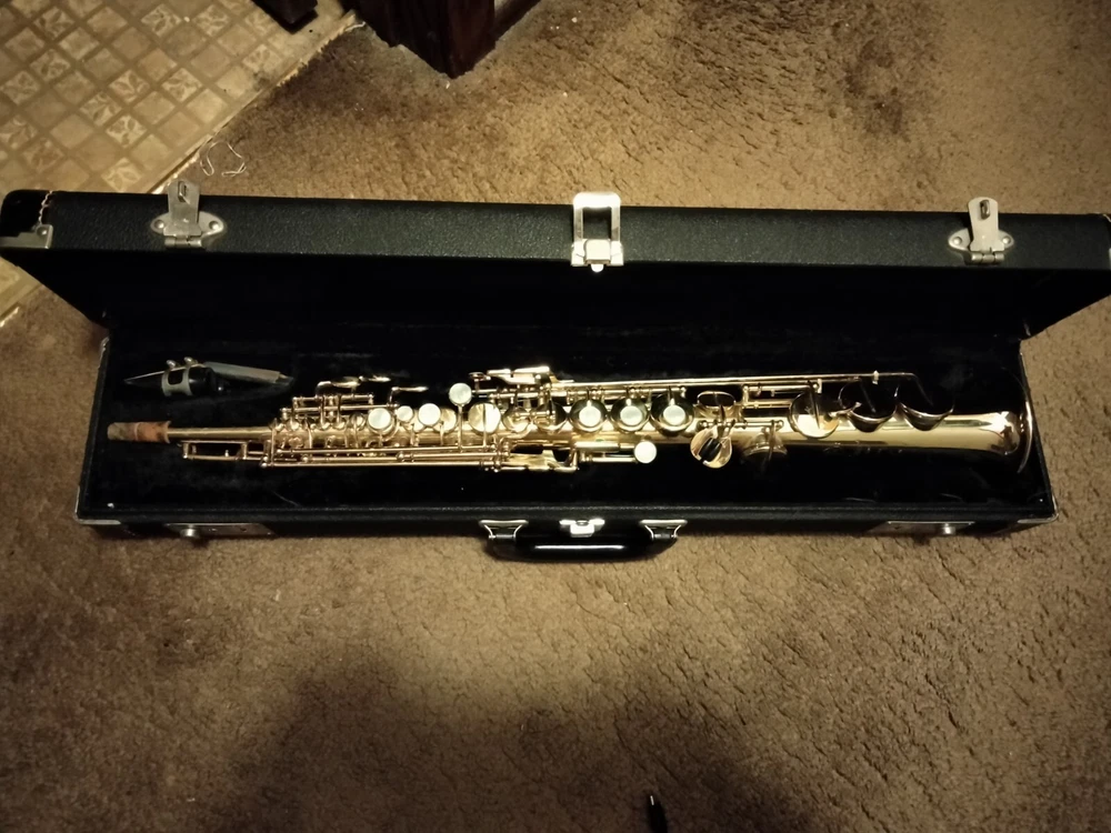 Seller Notes: “Beautiful horn played by notable musician” Brand: Selmer Finish: Lacquered Experience Level: Advanced, Expert Instrument: Saxophone Key: Bb Type: Soprano Saxophone Set Includes: Case, Mouthpiece Country/Region of Manufacture: France Body Material: Brass Color: Gold