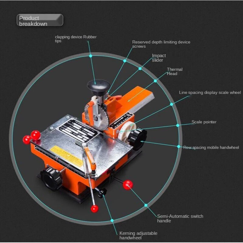 Item specifics Condition New: A brand-new, unused, unopened, undamaged item in its original packaging (where packaging is applicable). Packaging should be the same as what is found in a retail store, unless the item is handmade or was packaged by the manufacturer in non-retail packaging, such as an unprinted box or plastic bag. See the seller's listing for full details. See all condition definitionsopens in a new window or tab Origin Mainland China Brand Unbranded Type Nameplate Marking Machine Packing Carton MPN DOES NOT APPLY Weight 9.5kg Certification EAC,FCC Item description from the seller Product parameter Three-dimensional size: 320mm*285mm*270mm Marking area: 180mm* 135mm Marking depth: 0.1-0.3mm Print content: numbers, letters, simple symbols Character height selection: 2, 2.5. 3, 4, 5, 6mm Whether power supply: No power supply Kerning adjustment: support (isometric adjustment) Character wheel material: high quality die steel (12CrMO#) Marking speed: 2-4 characters/10 seconds Scope of application: marking of metal nameplates such as aluminum, copper, alloy plates, etc.