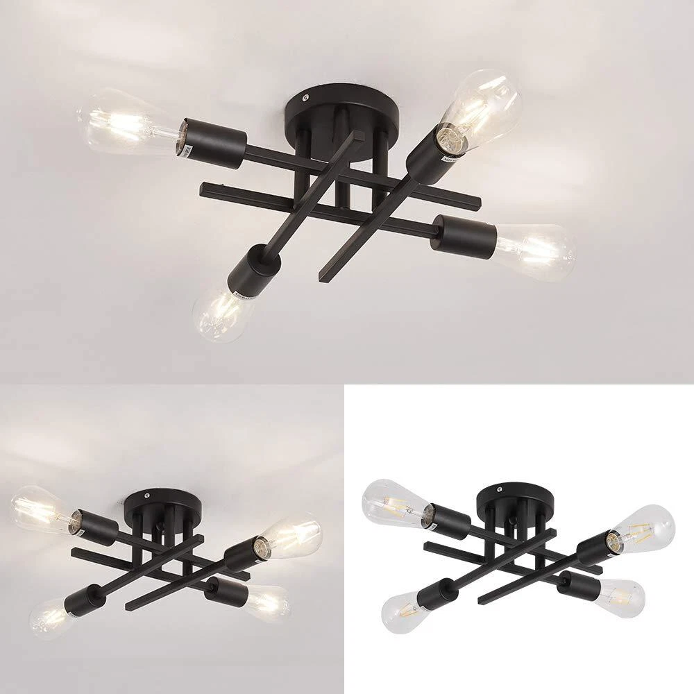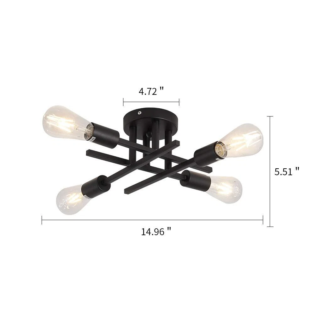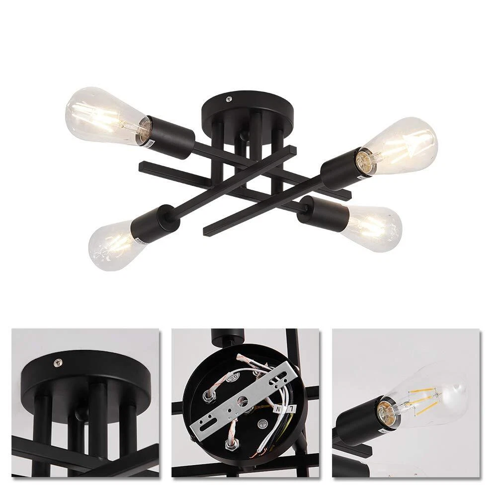 -Semi flush mount ceiling light CLOSE TO CEILING LIGHTING DESIGN --Semi flush mount chandelier light with elegant and rustic look, not only a farmhouse lighting, but also a modern beautiful decoration. Indoor ceiling fixtures flush mount design creates a comfortable and modern ambiance to your house.(Detailed installation video available) CEILING SPUTNIK LAMP SIZE --Indoor black ceiling chandelier light metal ,the top plate dia: 4.72 inch; fixture light total height: 5.51inch. wide 14.96. Base type: E26 [BULB NOT INCLUDED]. Watt: 60 watt ,Dimmable purchase dimmer and dimming bul. PENDANT LIGHT FIXTURE DECORATION --Black flush mount light will be a nice antique lighting decoration gift for house remodel, housewarming, Valentine's Day, birthday, weddings, party, holiday decoration or other special events. FLUSH MOUNT LIGHT FIXTURE APPLICATION --Farmhouse light fixture is suitable for bedroom, beauty salon, dining room, living room, study room, bathroom, bookcase, hallway, balcony, porch, gazebo, bedroom etc. After-sales : we value customer experience, if you have any questions, we will solve it for you as soon as possible!