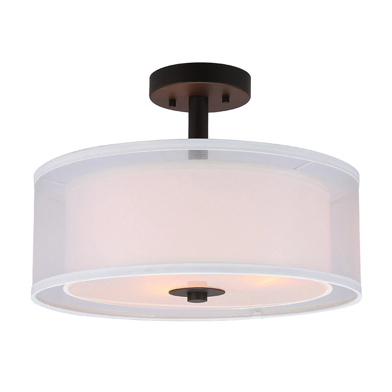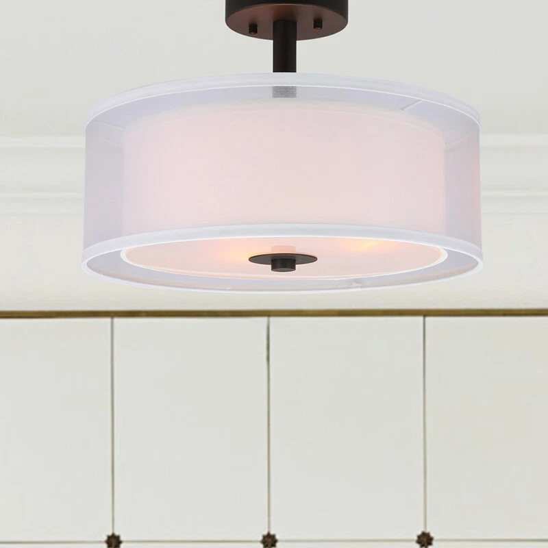 Drum semi flush ceiling light featuring a smooth dark bronze finish and white fabric shade, frosted glass diffuser. Its double fabric shade creates a comfortable and brings all the modern elements. This elegant drum ceiling fixture is perfect for Kitchen, Bedroom, Living room, dining room, foyer or any living areas, of which will lend elegance to your space while surrounding it with relaxing ambient light. Dark bronzed semi flush light is is an ideal for low or mid-height ceilings. The drum-shaped fixture has a dual outer and inner shade that adds a delightful dimensional aspect. Product Specification Dimension: W:16" x H:12" Finish: Dark Bronze Shade Material: Double Fabric Shade + Frosted Glass Diffuser Shade Dimensions: (Outer) W:16" x H: 6" (Inner) W:13ʺ x H: 5ʺ Socket: E26 Socket 3x60W (Bulb not Included) Compatible with Variety of Bulbs This semi flush mount is suggest to use “A” Type Max. 3x60W bulbs for medium base (E26 socket) (incandescent bulb or equivalent CFL / LED bulbs) The fixture is dimmable when using the dimmable bulb with compatible dimmer switch. Bulb not Included. Semi Flush Ceiling Light Collection XB-SF1194-BN Dimension W:16" x H:12" Finish Brushed Nickel Shade Material Fabric Shade + Glass Diffuser Shade Diamension (Outer) W:16" x H: 6" Socket E26 Wattage 3x60W (Bulb not Included) XB-SF1194-GB Dimension W:16" x H:12" Finish Gold Brass (Powder Coating) Shade Material Fabric Shade + Glass Diffuser Shade Diamension (Outer) W:16" x H: 6" Socket E26 Wattage 3x60W (Bulb not Included) XB-SF1289-DB Dimension W:16" x H:12" Finish Dark Bronze Shade Material Fabric Shade + Glass Diffuser Shade Diamension (Outer) W:16" x H: 4-7/8" Socket E26 Wattage 3x60W (Bulb not Included) Terms of Sale Shipping Policy: We ship within 1-2 business day from receipt of payment. We do not change your shipping address by email. Please make sure your address is correct before checking out and making payment. Payment Policy We accept most major credit cards, including, but not limited to, Visa, Mastercard, American Express, or Discover card and PayPal. All major credit cards are accepted through secure payment processor eBay Payment. All payment must be made within 7 days of the end of the auction. Otherwise, an "Unpaid Item Dispute" will be filed with eBay. Return Policy If you have any questions about purchases or concerns on our products or accessories replacement, please feel free to contact us through eBay's Message Center. However, if a return is required, please kindly noted that all returns should be met with following conditions: All return requests must be within 30 days of receipt. Return item must be in original condition as received (brand new in sealed package / with tags). Refund of purchase price less original shipping will be issued. Return postage is buyer's responsibility. Original shipping is not refundable for products features free shipping unless we're found at fault. We won't be able to refund if products are found damaged or used. Thank you. Any accessories (such as: Glass) broken via transportation can be replaced for free within 30 days receipt. However, If exceed the valid date to contact us that need you to pay for the accessories (such as: Glass), thanks!