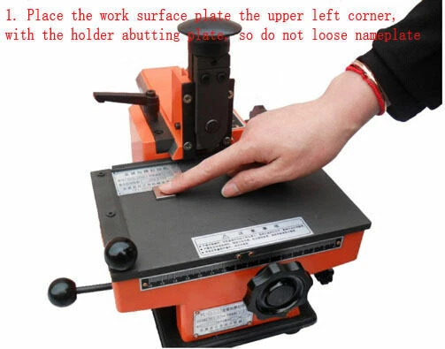 Description: 1.Semi-automatic Nameplate Metal Label Stamping Printer Marking Machine with small, novel structure, easy to operate smart, print handwriting neat, uniform lines clear, complete and diverse size. 2.The traditional way to stamp percussion, often resulting font crooked, shades, and inefficient. 3.For a long time, how to improve the quality of signs has plagued industrial enterprise engineering people Member. 4.Pneumatic marking machine (also known as: computer stylus plotter), although capable of engraving, but its high price allows many signs of a small number of SMEs prohibitive. 5.I plant designed and developed signs parameters smashing machine (hand clap mechanical) completely solve the above drawbacks and low prices. Launch of a product on the market has been widely recognized. Features: 1.Print signs Material: iron, aluminum, copper, stainless steel 2.Print signs maximum size: ≤180mm × 135mm 3.Digital word round included: 4.Capital letters: ABCDEFGHIJKLMNOPQRST UV WXYZ 5.Arabic numbers: 1234567890 6.Simple symbols: × / - 7.Word round font height Application: Engraved on the metal plate change parameters: If the specific type, date, batch number, serial number, serial number and so on. Typical applications: Mechanical, electrical, pumps, valves, automobile, electrical appliances on all types of aluminum, copper, stainless steel, plastic nameplate. How it works: 1.By high-frequency quenching of steel turn dial in the external force (hand pressure or a rubber hammer to hit), engraved on the metal plate out of a certain depth (0.1 ~ 0.3mm deep) letters or numbers; 2.Heat-treated steel rotatable dial to the desired letter or number, easy to replace the words; 3.Engraving position, spaced by specialized mechanical stepless adjustment; 4.Rely on manual adjustment of the spacing between words; 5.Different character height can achieve by replacing the dial; 6.Various shapes appearance less than 200 × 130mm engraving signs can be clamped. Specifications: 6mm Word height 6mm and word width 2.8mm (for signs positive print box height 8 ~ 10mm) Package Include: 1 x Set of Marking Machine 1 x 6mm font Any problem,please free to contact us first, we will help you solve it soon,Thanks!