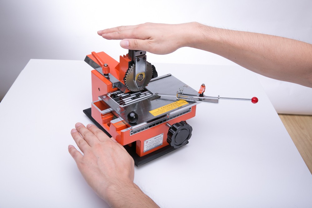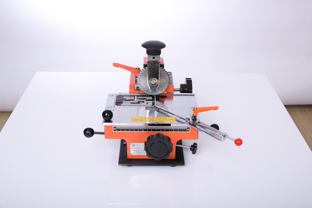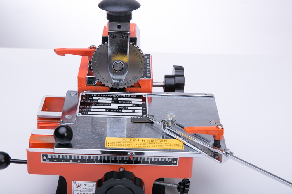 eBay Semi-automatic sheet embosser metal stamping printer marking machine label 4mm Application: Emboss on all types of aluminum, copper, stainless steel, plastic tag for mechanical, electrical, pumps, valves, automobiles, motorcycles, electrical appliances. It embosses variable parameters: such as dog tag, specific model, date, batch number, serial number, serial number and so on. Principles: 1.The external force (hand pressure or a rubber hammer) will emboss letters or numbers on the metal plate with a certain depth (0.1 ~ 0.3mm deep). Its stepless adjustment agent will adjust the embosser position, word spacing, and line spacing. The character heights can be adjusted by changing different. Different letters and numbers can be easily changed by turning around the plate. 2.Maximum label size: 200*130mm 3.Print characters: uppercase letters, digits, and simple symbols 4.Font size: 2 mm, 3mm, 4mm, 5mm, 6mm(This item Font size is 4MM,if you need other size,please tell us) 5.Print speed: about 2-4 characters / 10 seconds 6.Printing content including: A B C D E F G H I J K L M N O P Q R S T UV W X Y Z 123456789 . x / - How to use 1.The placing of signs methods, Signs placed in the work surface as shown upper left corner, with the signs and magnet clip without compression plate loosening. 2.Wheel loading and unloading, first used the word wheel wrench to remove the wheel nuts, and selected the right wheel, wheel lock fitted to the nut, aligned pointer. 3.Print, and start position adjustment, good signs placed to separate the clutch, turn the hand wheel spacing and kerning hand wheel so that wheel aligned characters printed on the box location just above the lock extension units, release the clutch lever, under pressure for a few kerning feed handles can be seen feeding on the caliper spacing density (hand wheel with a good tune kerning) depress the clutch, turn the hand wheel, release the clutch lever back in situ, with the palm of your hand slap of rubber parts, spacing after the feed handle pressure, to achieve printing.