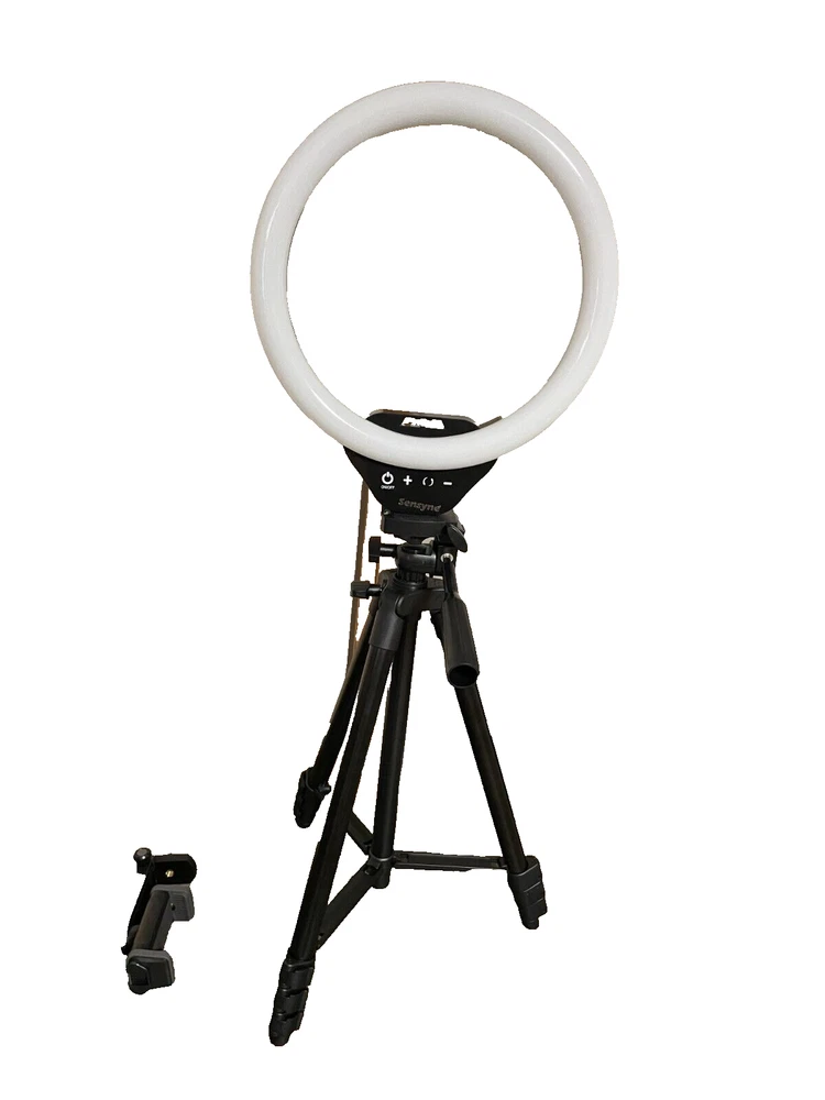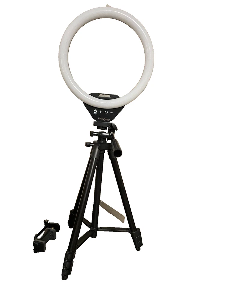 The Sensyne 10" Ring Light with 50" Tripod Stand is a professional lighting kit designed for photography and video recording. This LED ring light provides a soft and even illumination to enhance your selfies, videos, or live streaming sessions. The adjustable tripod stand allows you to easily position the light at the desired height and angle for optimal lighting conditions. With its compact size and versatile functionality, this ring light is a convenient and practical tool for capturing high-quality images and videos in various settings. Thank you for your interest if you have any questions please let me know.