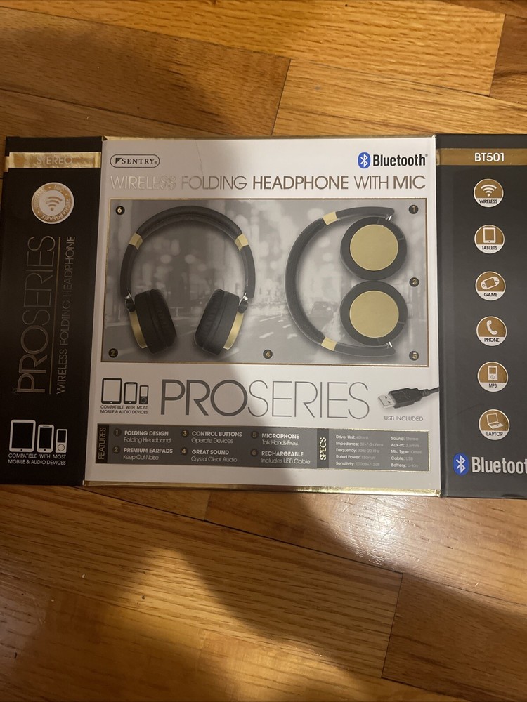 Make exercising, walking, and relaxing more enjoyable with these Pro Series Bluetooth® Deluxe Folding Headphones. Headphones feature Bluetooth® technology so you can listen to music and make phone calls without the hassle of wires. Other features include a built in microphone, rechargeable battery, soft earpads, and easy-to-press buttons with full audio control. Included with headphones is a USB charging cable. For added convenience, these headphones fold to pack away in a purse, tote, backpack, or bag. A must-have for anyone on the move! Sold individually With microphone so you can make hands-free phone calls Wireless Bluetooth® functionality Lightweight and comfortable fit Folding design Crystal clear audio Premium earpads Rechargeable Include USB charging cable Sold in a sturdy peggable box