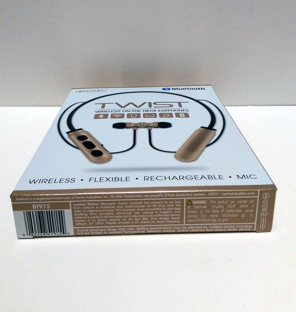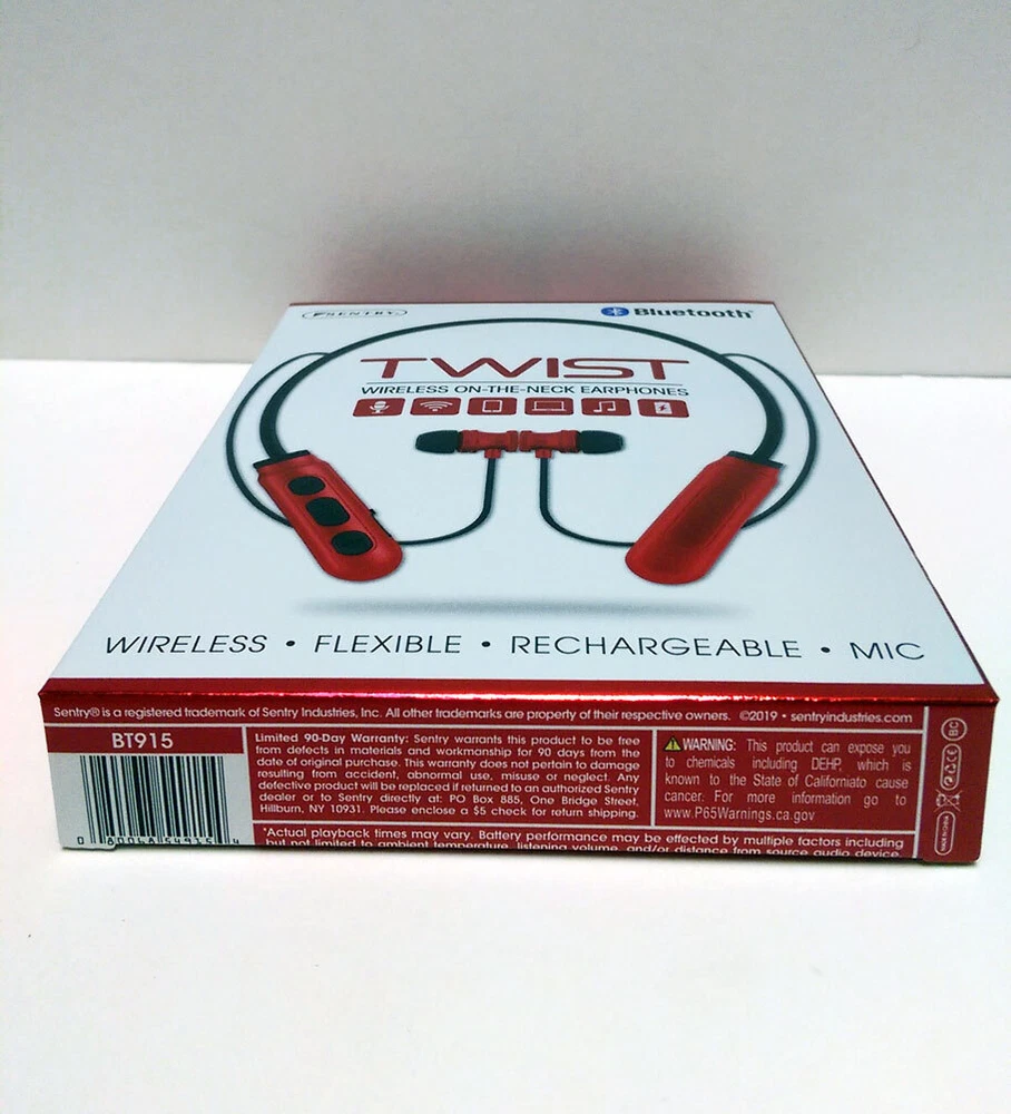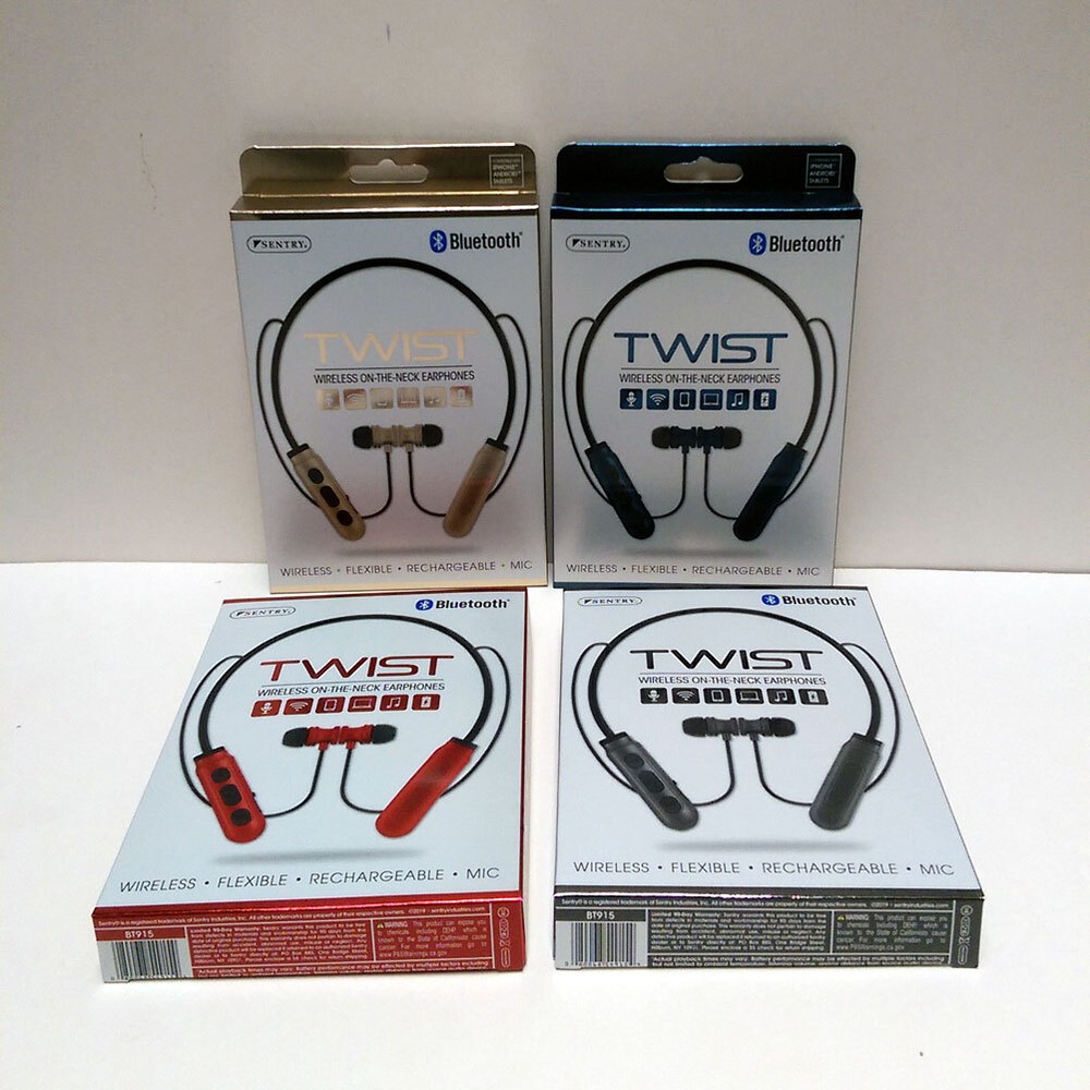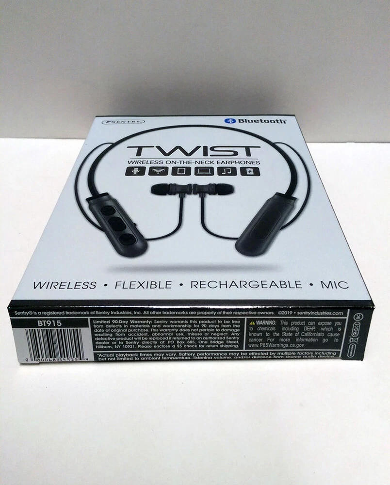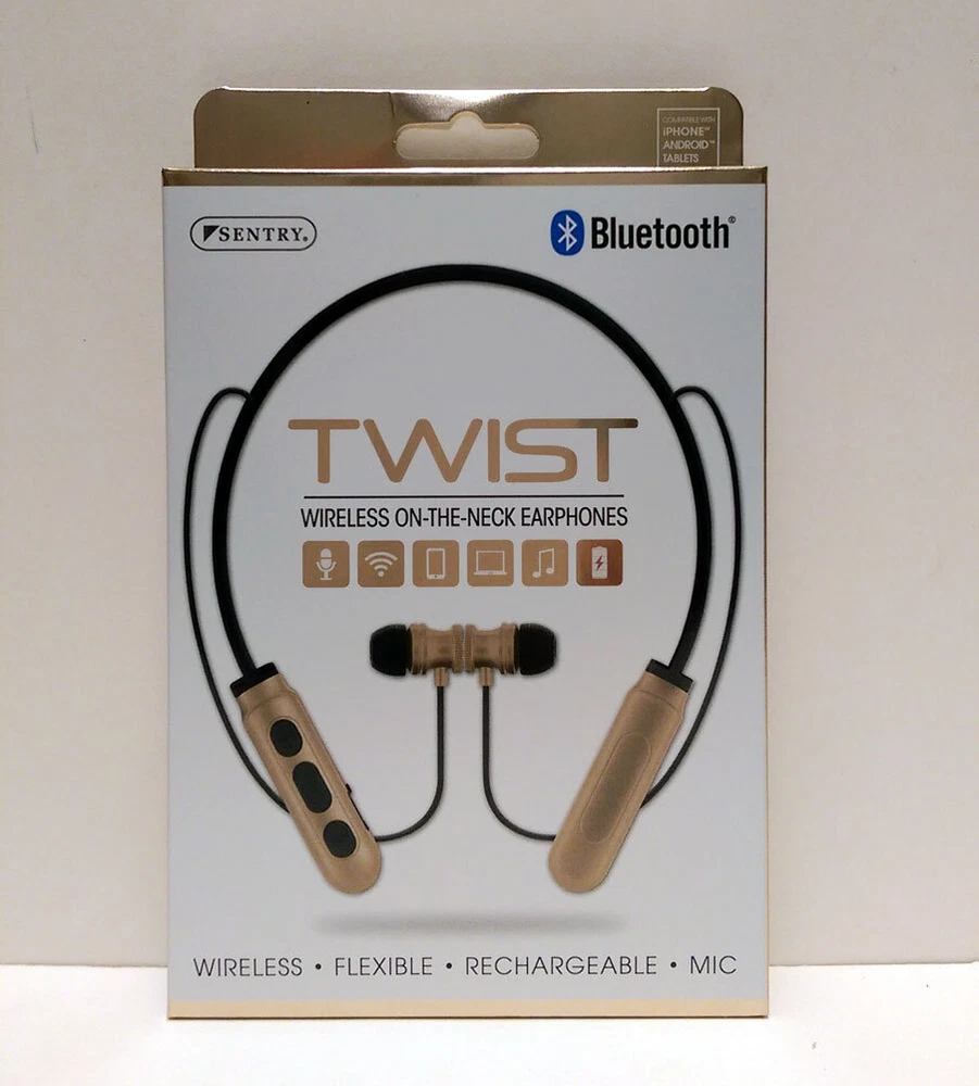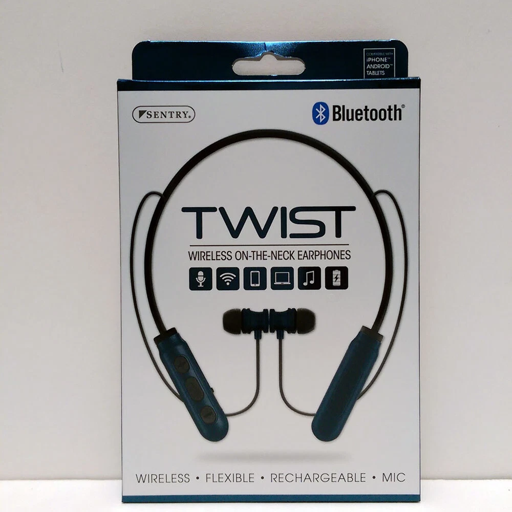BRAND NEW Sentry Bluetooth TWIST Wireless ON-THE-NECK Earphone Headphones Earbuds Wireless-flexible-Rechargeable-Mic Key Features: One Sentry Bluetooth TWIST Wireless ON-THE-NECK Earphone Compatible with iPhone, Android and Tablets Stereo - Phones, Wireless, Controls, Computers, In-Line Mic, Recharge, Comfort Magnetic earbuds: Earbuds stay secure Microphone: hands Free talk Control Buttons: Wirelessly Operate devices Flexible Design: For a comfortable custom fit On-The-Neck Design: Lightweight and wireless Rechargeable Battery: Recharge via included USB Brand New Item # JC343471 Specifications: Driver Unit: 10mm Sensitivity: 104+/3dB Impedance 32 ohms Battery Li-ion Frequency: 20Hz-20KHz Version: Bluetooth 5.0 Rate Power:<100mW Playtime: Up to 2 hours of 50% volume VISIT OUR EBAY STORE FOR MORE ITEMS