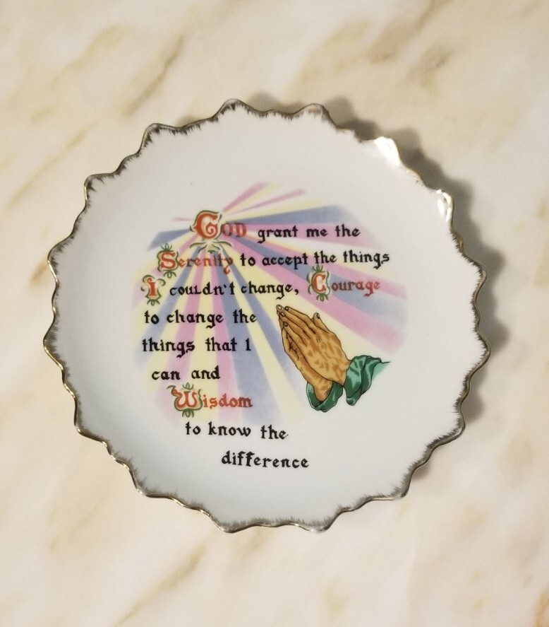 This beautiful decorative plate is perfect for any collector or fan of the Serenity Prayer. Measuring 7 inches in diameter, it features a classic round shape with a stunning hand-painted design of praying hands and the Serenity Prayer inscription. The plate is made of high-quality ceramic material and was manufactured in Korea, Republic of. The white color of the plate makes it versatile and suitable for all occasions, and it comes ready to hang on your wall as a unique and meaningful piece of decor. Whether you're a collector of decorative plates or simply looking for a special gift for a loved one, this Serenity Prayer plate is sure to impress. You Will Receive The Item(s) Pictured. We Do COMBINE SHIPPING So Take A Look At Our Other Items. If You Would Like To Take Advantage Of The COMBINED SHIPPING Please Wait For Invoice Before Payment. If You Have Any Questions We Will Be Happy To Answer Them.