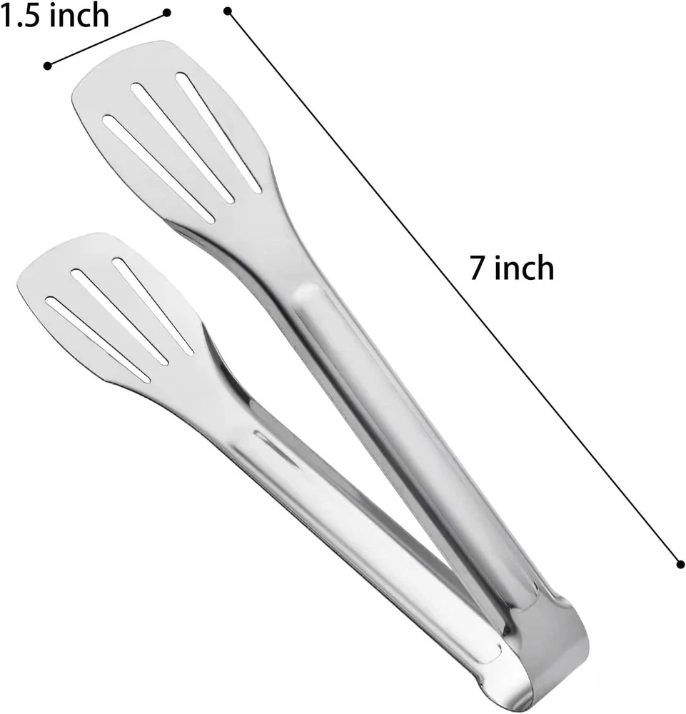 Recommended - Ideal for serving variety of foods. A Perfect Tool for parties, dinner, afternoon tea, buffet, catering, wedding celebrations or daily use for home, hotel and restaurant. PREMIUM QUALITY KITCHEN TONGS: Made of top Quality 1mm corrosion resistant Stainless Steel for unbeatable strength and premium construction. While remaining lightweight and easy to handle! Non-stick materials. Durable and safety, smooth edge will no scratch your hand. High Quality - Premium thickened stainless steel, mirror polished and both sides net holes design for effective grasping. Dishwasher Safe - Please clean the stainless steel tongs after using and store them in dry. PACKAGE CONTENT - 6 Piece 7-Inch serving tongs set Product Description PACKAGE CONTENT:6 × 7 Inch mini stainless steel tongs Great for serving appetizers, desserts, salads, burgers, hot dogs, toppings and more for any party, family dinners and any other event. A Perfect Tool for parties, dinner, afternoon tea, buffet, catering, wedding celebrations or daily use for home, hotel and restaurant. including serving and cooking foods such as salads,grilled foods, pasta, fruits,vegetables,meat and more. High Quality - Premium thickened stainless steel, mirror polished and both sides net holes design for effective grasping. Non-stick materials. Durable and safety, smooth edge will no scratch your hand. Mirror polished stainless steel mini tongs, sturdy and rust proof. Notice 1. Please wash the sugar tongs with warm soapy water before first using 2. Please clean and air dry the tweezers tongs after using for your healthy daily use, and store them in dry place for its durability