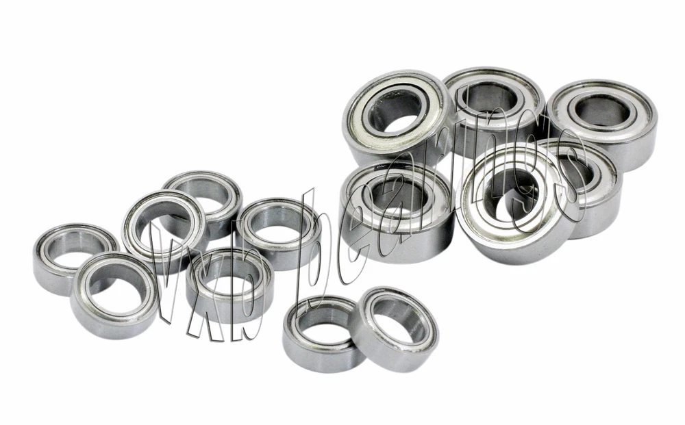 Complete Bearings Set Tamiya TG10 Set of 14 Bearings Complete set Ball Bearings for Tamiya TG10, Set Contains 14 Bearings. each bearing has 2 metal shields to protect the bearing from dust or any possible contamination, also bearings are pre-lubricated with grease. Item: Complete Bearings Set Model: Tamiya TG10 Closures: 2 Metal Shields Pack#187 Quantity: 14 Bearings Pack#187