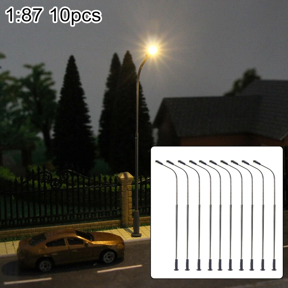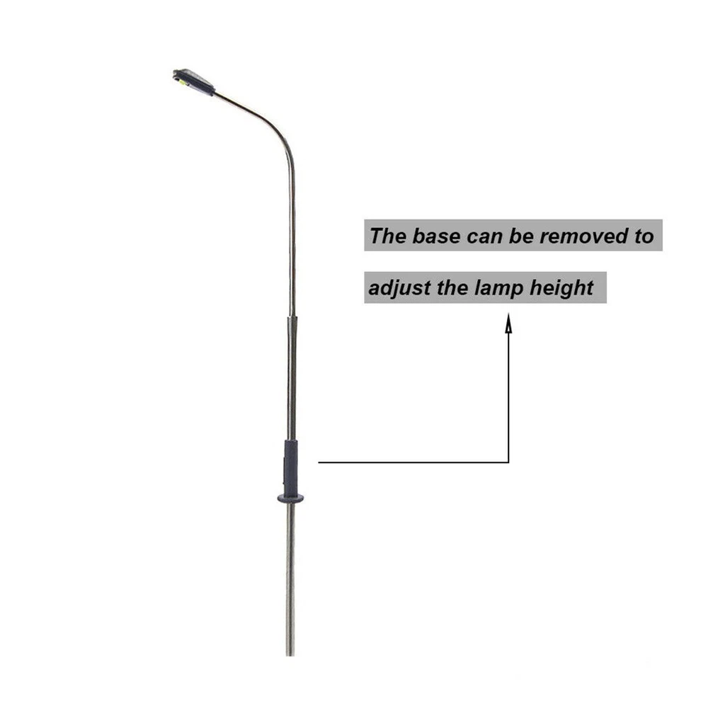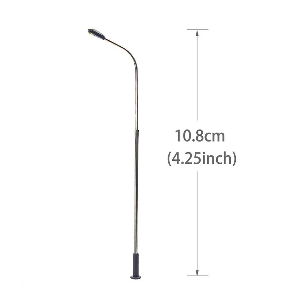 Product Description Note: Since the size above is measured by hand, the size of the actual item you received could be slightly different from the size above. Meanwhile, please be reminded that due to lighting effects, monitor's brightness / contrast settings etc, there could be some slight differences in the color tone of the pictures and the actual item. Features: * brand new and high quality *Made of high-quality materials, safe, environmentally friendly, and *Model train scenery or street layout accessories, very suitable for model railway landscape *High quality work light with wiring *Equipped with wires and LEDs, and can be lighted *These lamp posts are only suitable for 3V supply voltage *You must connect a resistor in series before you will use them on 12V or 16V, I will supply compatible resistors for . *Please apply correct Operating Current 20mA to each LED too. *Uses: accessories for building sand table models, garden decoration, supporting landscape, leisure and entertainment, scene model lights, moss microlandschaft equipment, DIY ecological bottle materials *Light up your model layout with this great model lamp post Specifications: *Material: Plastic *Height: 10.8cm(H) or 4.25''(H) Inch (A pprox.) *Reference Scale: 1:76~1:100,Suitable for OO scale or HO scale etc. *Operating Voltage: 3V, AC or DC Compatible. *Operating Current: 20mA. *Material: Steel Column Model Lampposts. *Emitting color:Warm White. Package Contents: 10*Model Street Lights Note: 1. The real color of the item may be slightly different from the pictures shown on website caused by many factors such as brightness of your monitor and light brightness. 2. Please allow slight manual measurement deviation for the data. Payment Payment must be completed within 5 days. If you have any problems about payment, please contact us via ebay message. Delivery details We only ship to confirmed ebay Order addresses. Please comfirm that your Order address is in line with your shipping address. Please kindly note that the c ombined shipping is not provided because the shipping fee is calculated by weight. Also, the each additional item means exactly the the same color and size. It takes about 7 -15 working days to US; about 10-30 working days to other countries. Transit time may be a little delayed because of the bad weather and customs inspection . If you do not receive your item within 30 working days since payment finished, please contact us immediately for further assistance. Contact us We strive for 100% customer satisfaction! Positive Feedback is very important to us. If you have any questions, p lease feel free to contact us via "Ask seller a question" . We will reply your email within 24 working hours.