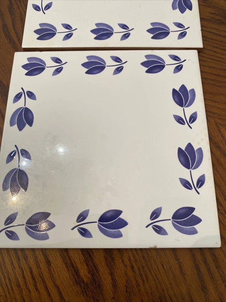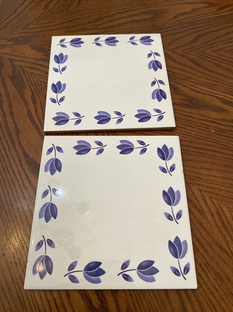 This set of two Italian tulip trivets in blue and white is perfect for protecting your countertops and tables from hot pots and pans. The ceramic material ensures durability and long-lasting use, while the glossy finish adds a touch of elegance to your kitchen. Designed as a practical and stylish addition to your kitchen, these trivets are ideal for holding hot dishes and plates during meal times. Their vibrant blue color adds a pop of color to your kitchen decor, and their unique tulip design is sure to make a statement. Perfect for anyone who loves to cook and entertain, these trivets are a must-have for any home. Trivets in great condition and ready for use. Measurements 8”x8” Thanks for looking and have a great day!!