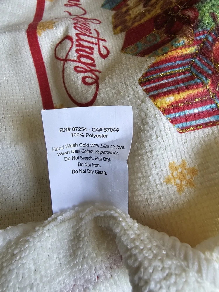 Item Width:15 inCountry of Origin:ChinaPersonalize:NoItem Length:24 inOccasion:ChristmasSet Includes:hand towelMaterial:100% PolyesterCharacter:unknownType:Hand TowelStyle:TraditionalTheme:Christmas TreePattern:treeNumber of Items in Set:2Model:Seasons GreetingsColor:MulticolorCare Instructions:Machine Washable up to 85°FCharacter Family:unknownBrand:UnbrandedFeatures:Machine Washable