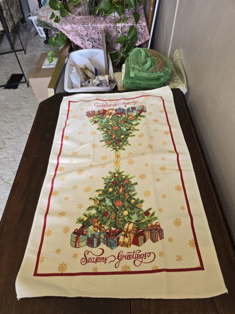 HomeSet Of 2 Kitchen Hand Towels Christmas Tree "Seasons Greetings " 100% Polyester