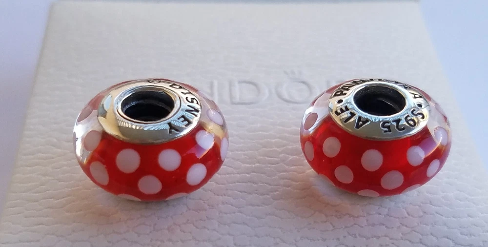 Set Of 2 New Pandora Authentic Disney Minnie Mouse Polka Dot Murano Charm The charms are new, never worn. Some charms are used for pictures and advertising purposes only. All charms come in Jewelry Pouch with Pandora logo on it. Bracelet and Box NOT INCLUDED.