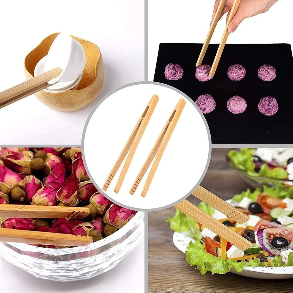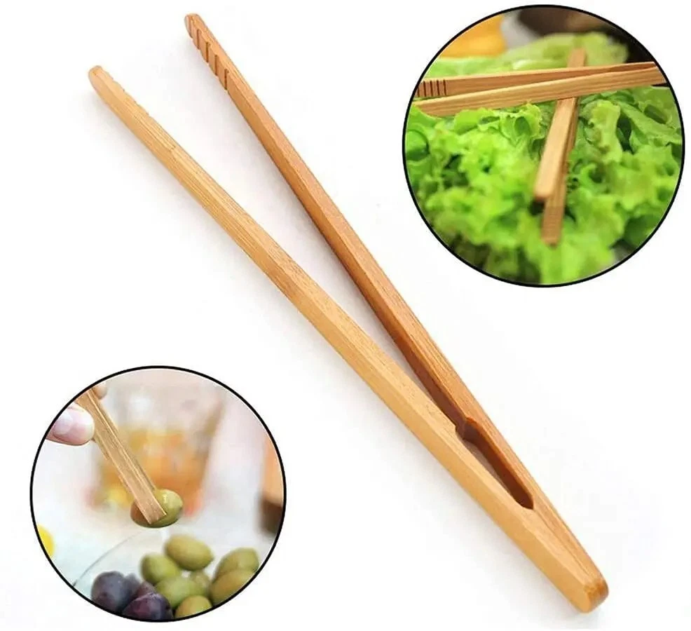 DESCRIPTION: Made of bamboo, heat resistant, made very well and quite sturdy. Ergonomic design to grip objects comfortably, lightweight and easy to use. Bamboo material is stain and odor resistant, easy to hand wash and the tongs will last for years. Environmental protection is non-toxic, high temperature, does not release toxic substances, can be used safely. Our bamboo tongs are thin enough to slide easily into the holder. Ideal for cooking toast bread pickles tea and etc. We are sure you will love this kitchen tool. SPECIFICATIONS: 1. MATERIAL: Bamboo 2. COLOR: Light brown 3. SIZE: 18cm. 4. QUANTITY : 2Pcs. HIGH QUALITY. Kitchen7Tools, The best kitchen tools. All our shipments are free, delivery is 7 to 12 business days. Thank you for your purchase, if you have any questions please do not hesitate to contact us. Set Of 2 Reusable Bamboo Toast Tongs - Wooden Toaster Tongs For Cooking Kitchen