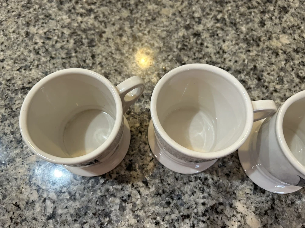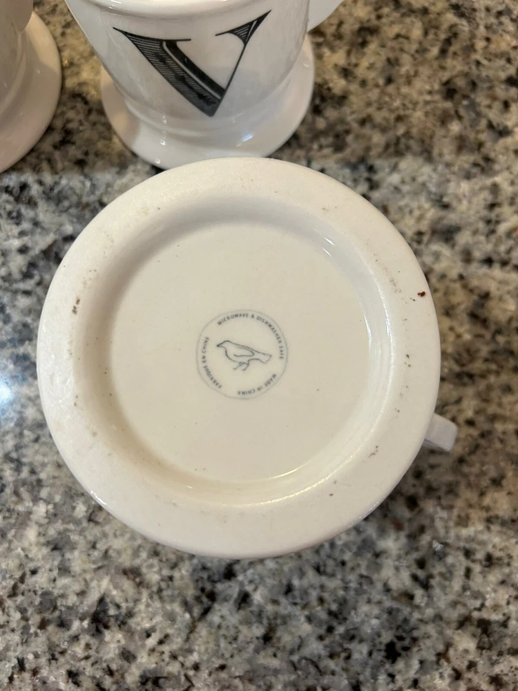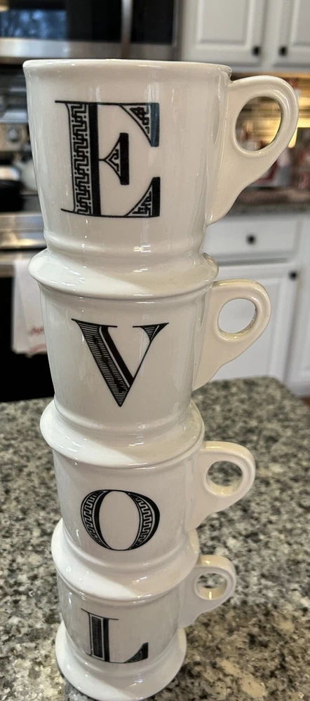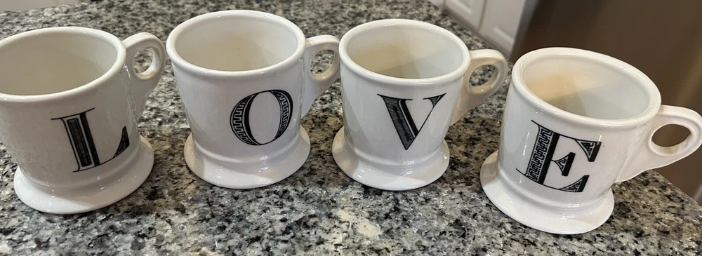 Set Of 4 ANTHROPOLOGIE Monogram Mugs LOVE Stoneware. Perfect for Valentines Day . Mugs are in excellent condition and measure 4 inches tall.